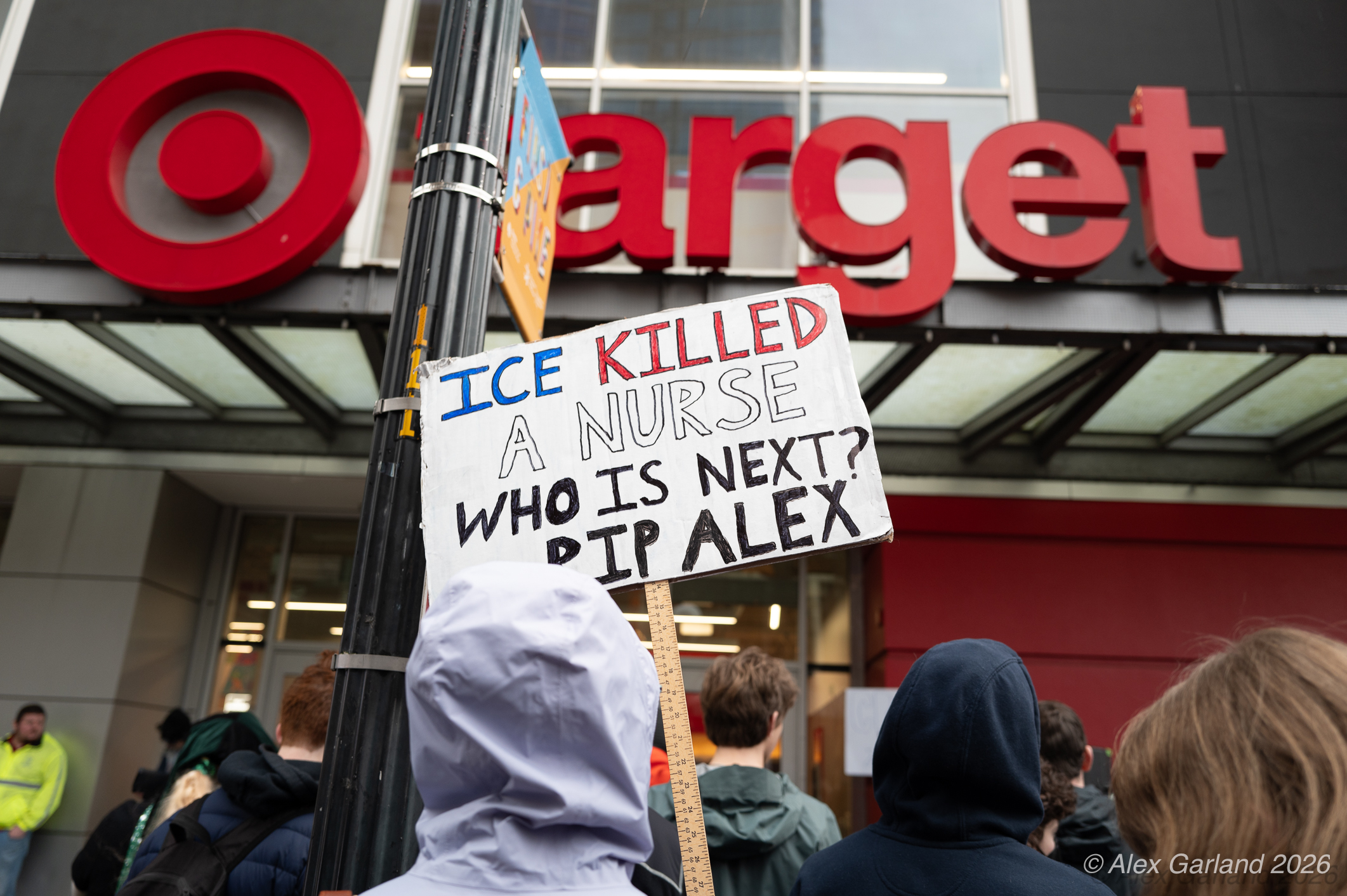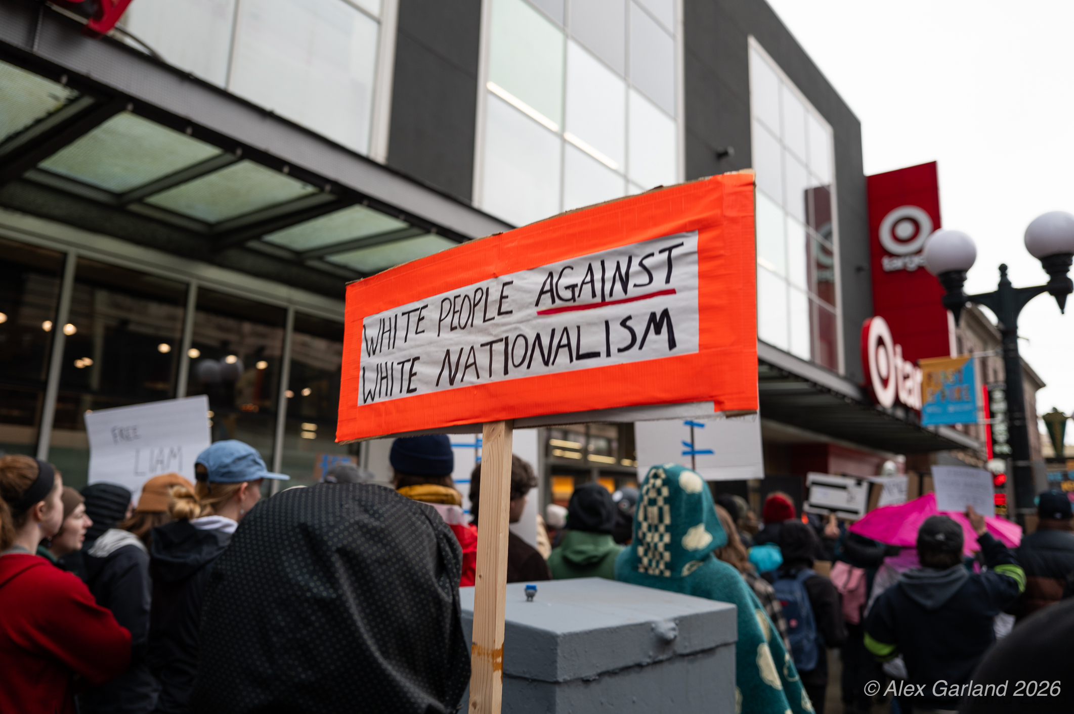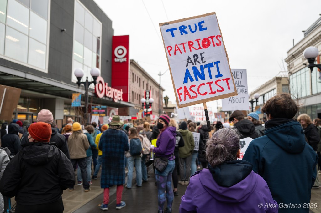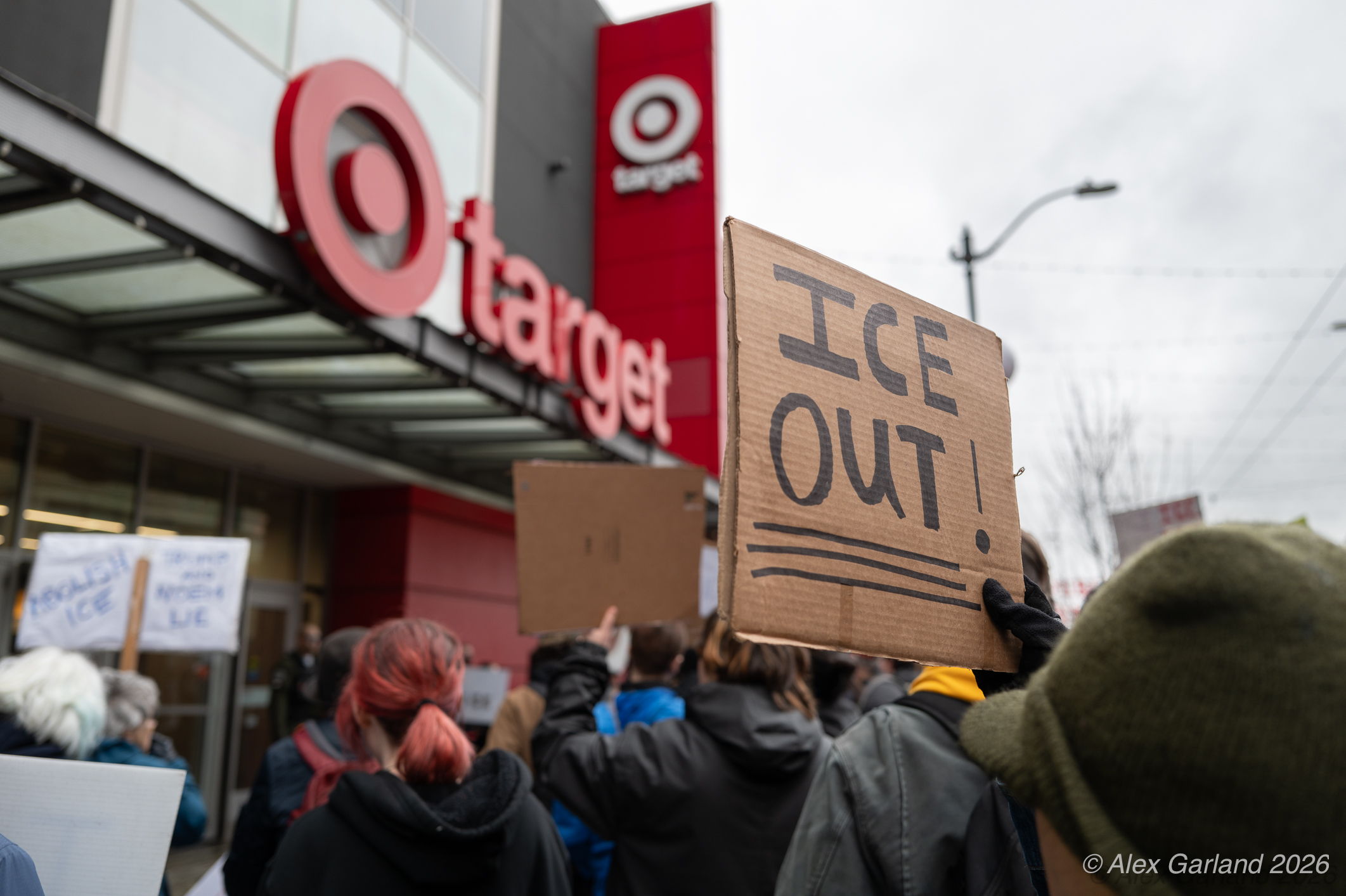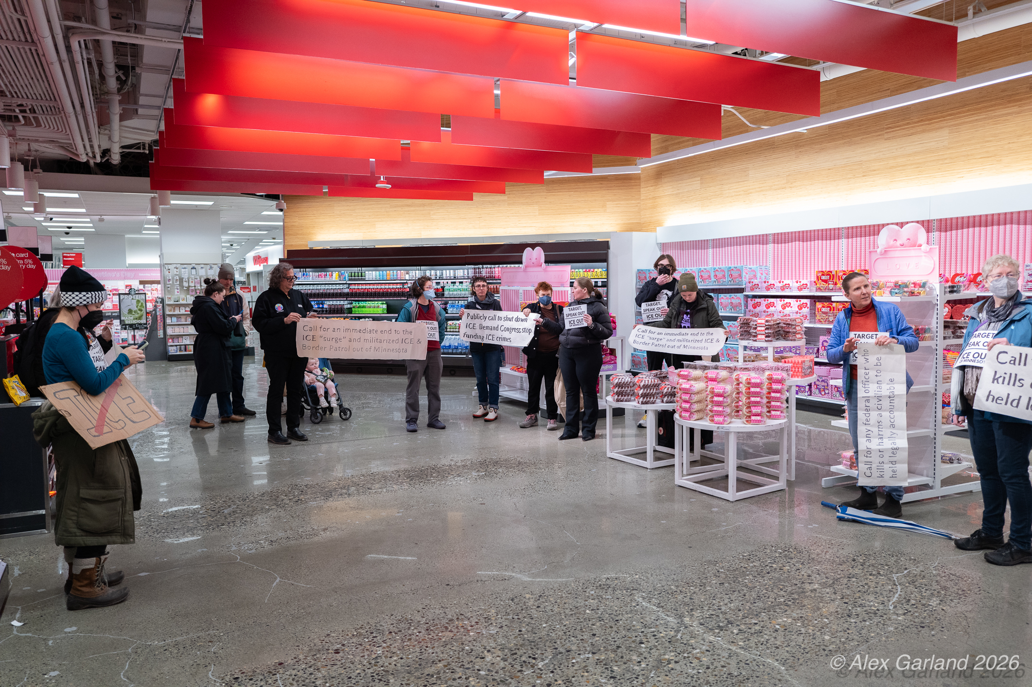 The protest took on more direct action when approximately twenty activists made their way inside the Target location in downtown Seattle itself. Once inside, these demonstrators articulated a series of specific demands regarding the company’s policies and practices. They emphasized that Target, as “Minnesota’s largest corporate citizen”, holds significant influence and responsibility in the communities it serves. While the activists inside the store voiced their grievances and demands to staff and customers, their counterparts amplified the message by carrying and displaying banners that detailed the protesters’ key demands and talking points.