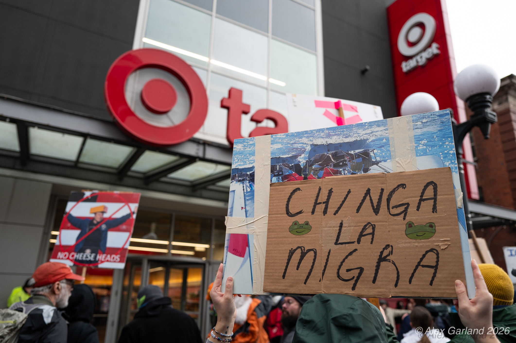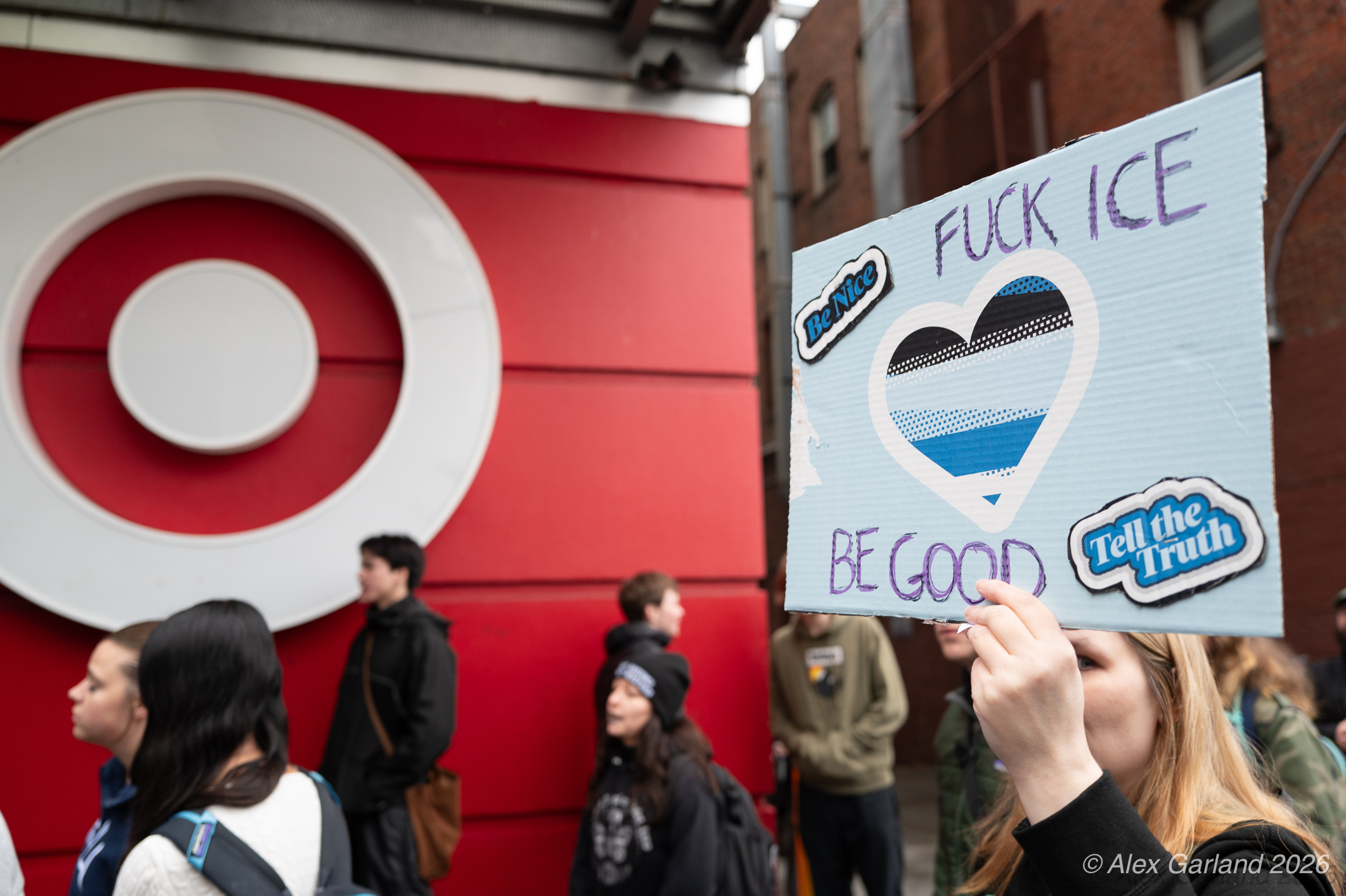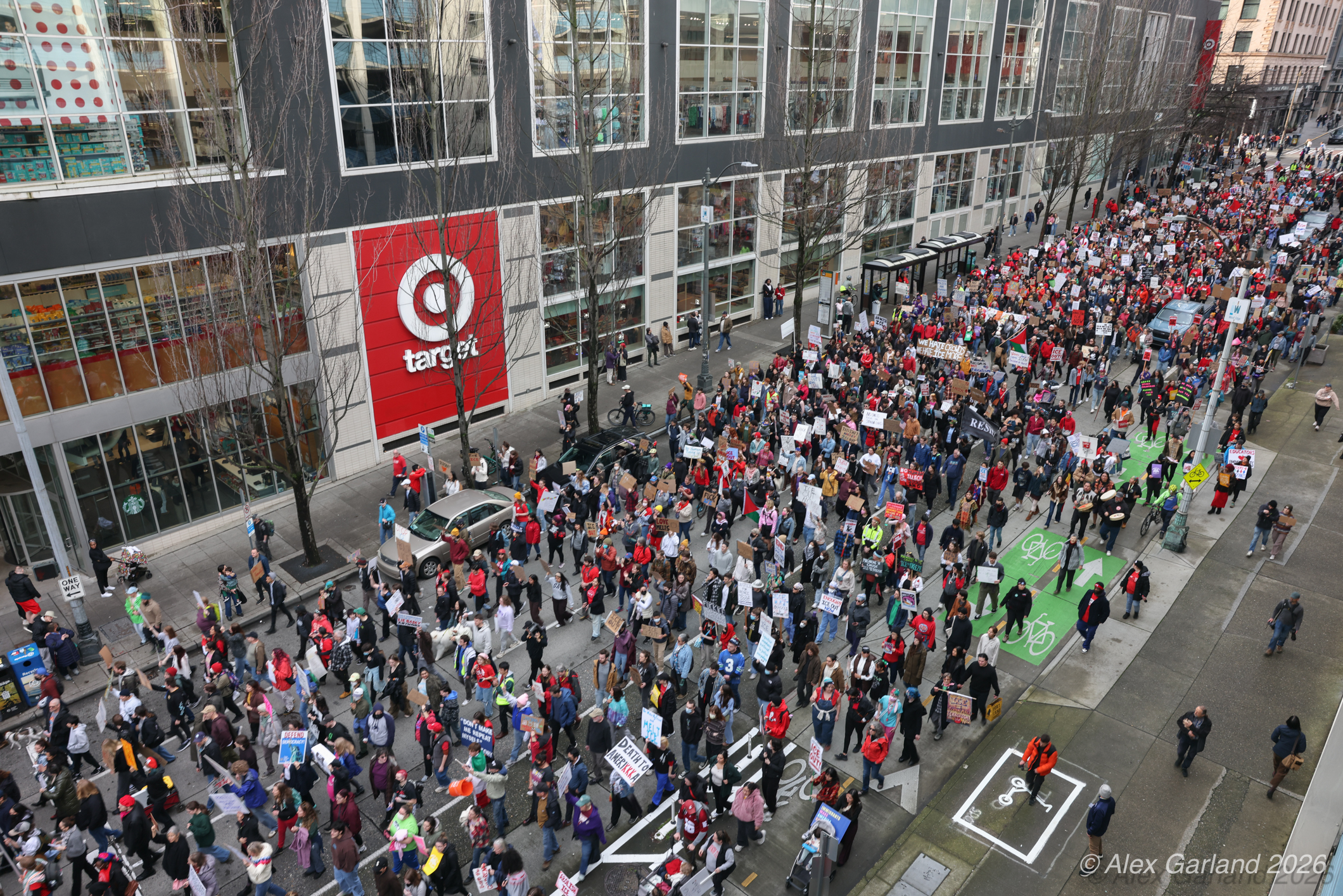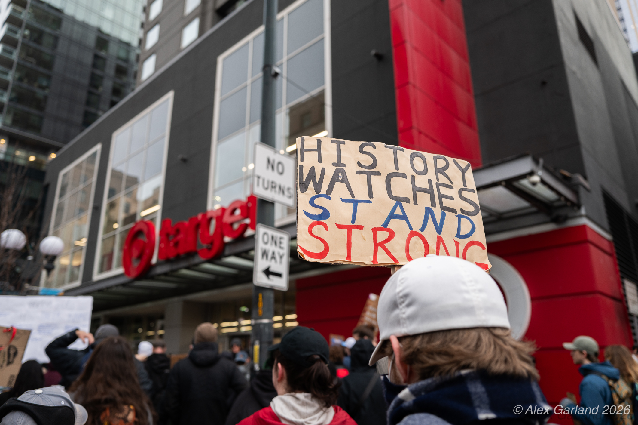 The protest took on more direct action when approximately twenty activists made their way inside the Target location in downtown Seattle itself. Once inside, these demonstrators articulated a series of specific demands regarding the company’s policies and practices. They emphasized that Target, as “Minnesota’s largest corporate citizen”, holds significant influence and responsibility in the communities it serves. While the activists inside the store voiced their grievances and demands to staff and customers, their counterparts amplified the message by carrying and displaying banners that detailed the protesters’ key demands and talking points.