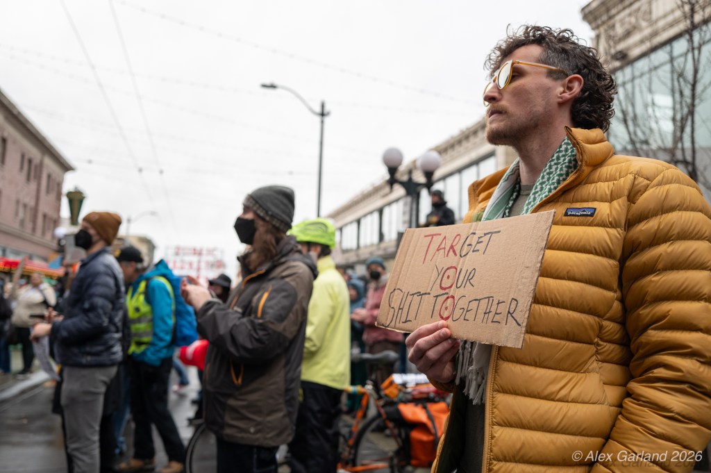 The decision to hold actions at both Palantir’s offices and the ICE facility in Tukwila underscored protesters’ argument that corporate surveillance technologies and immigration enforcement represent interconnected systems of control. Speakers had emphasized how companies like Palantir profit from government contracts while developing tools that affect both immigrant communities and broader worker organizing efforts.