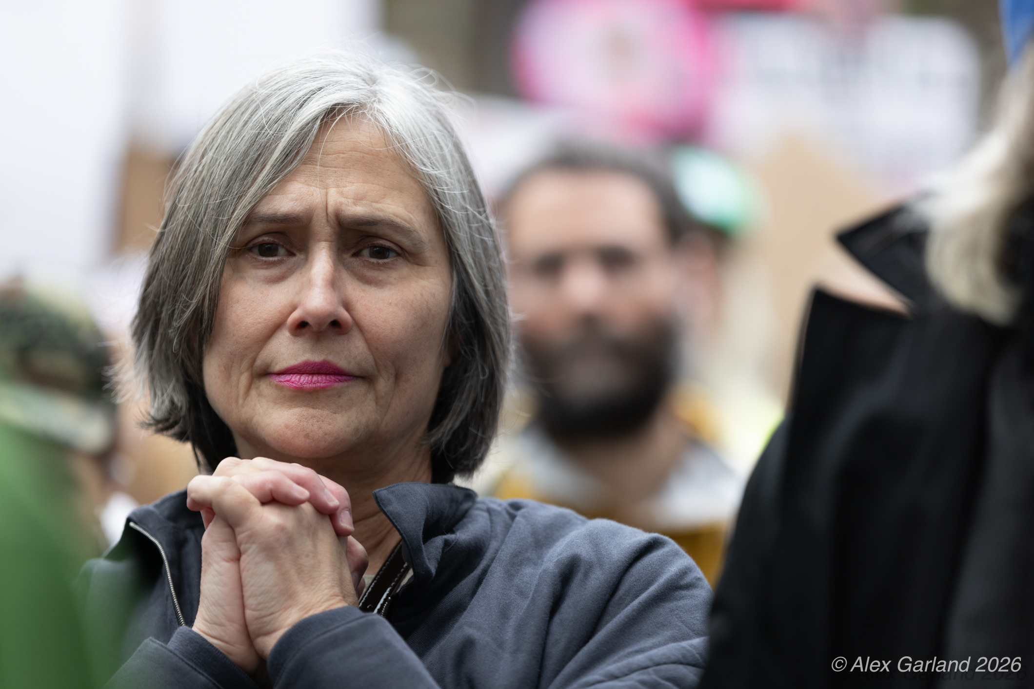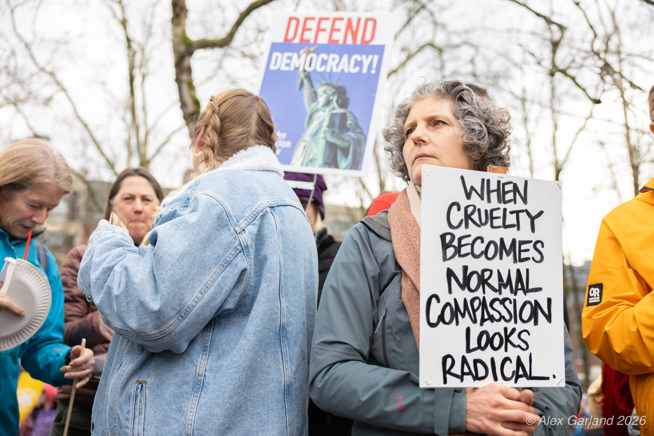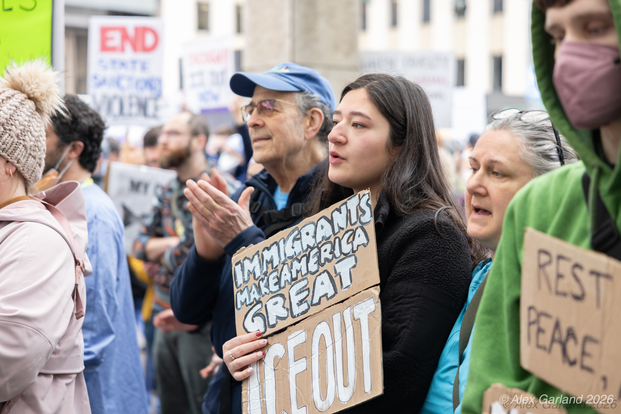 Lucas MacDonald, an advanced registered nurse practitioner with Harborview Mental Health and Addiction Services, spoke to the healthcare workers’ perspective during the rally. “Alex Pretti was one of the best of us. He was a leader in his ICU. He led them through Covid chaos, mentored younger nurses. As a former ICU nurse, I guarantee when the emotions ran high, he remained calm, and he is dead, killed by some gassed up ice goons who, in a panic, pinned a man down and executed him in the street. We can’t stand for this. We have to stand up against this darkness that descends on our country. We can’t let bullies and thugs define what patriotism is. We serve our country too. We put on masks to protect our patients, not to terrorize neighbors. We put on masks to protect our families, not to murder people in the streets.”
