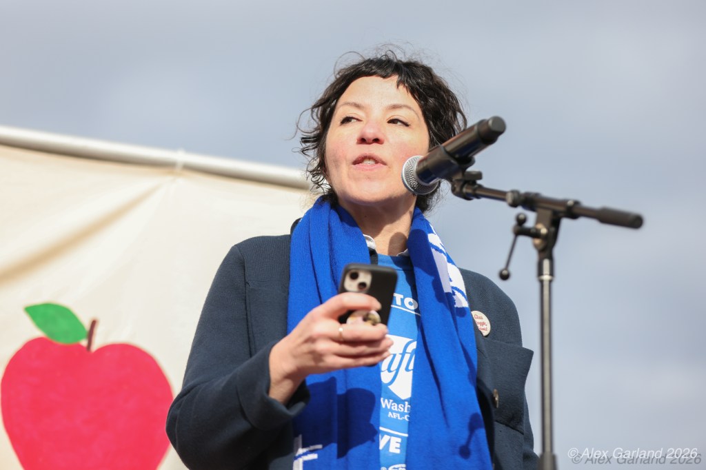 Planned Parenthood Alliance Advocates greater Seattle organizer Madeline Brown delivered stark projections about the Medicaid cuts’ impact: “These cuts to Medicaid are going to increase and are going to result in 200 clinic closures, 90% of which are going to be in access states like Washington.”