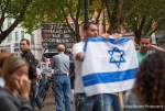 - Pro Israel activists can been seen draped in Israeli flags as pro Palestine supporters look on.