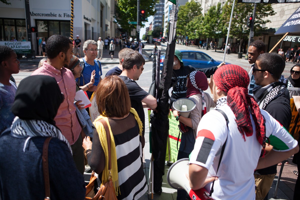 IMG_2843-2 Published August 14, 2014 at 5616 × 3744 in Activists Protest Bombing of Gaza and innocent passerby harassed by pro Israel opposition and arrested ← Previous Next →