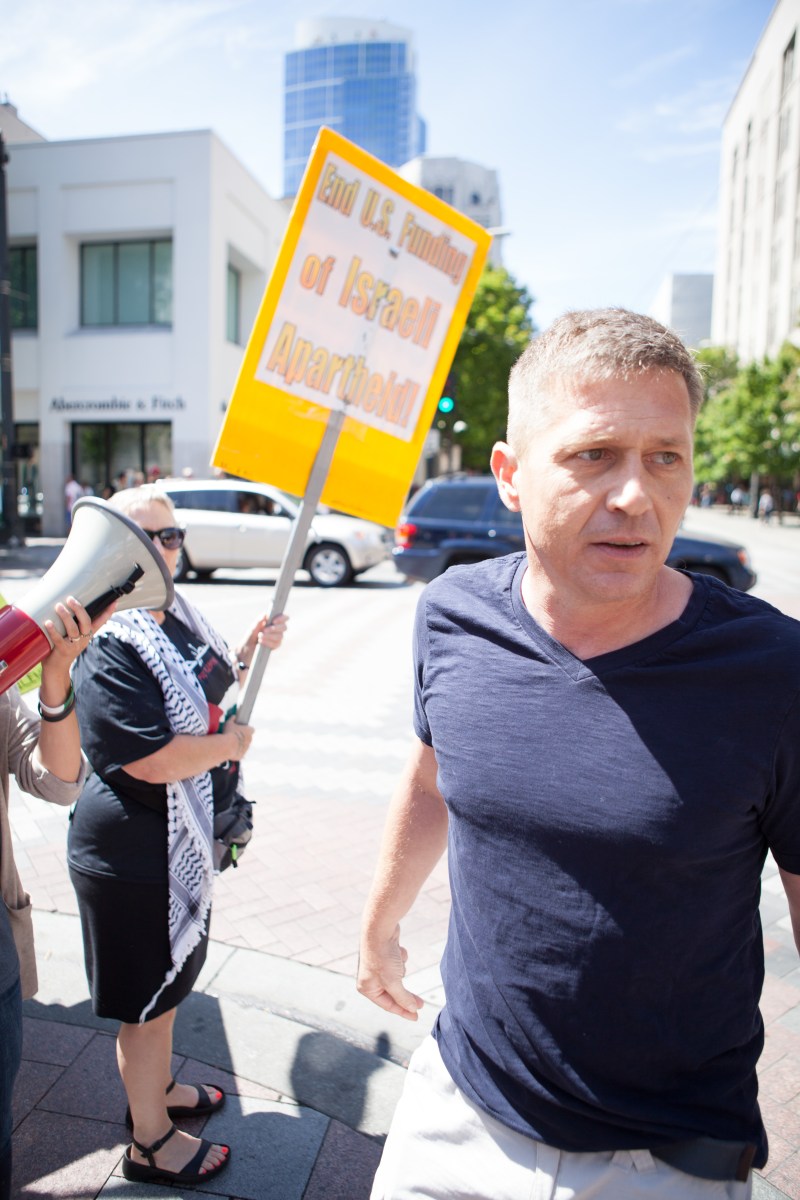 IMG_2853 Published August 14, 2014 at 3744 × 5616 in Activists Protest Bombing of Gaza and innocent passerby harassed by pro Israel opposition and arrested ← Previous Next →