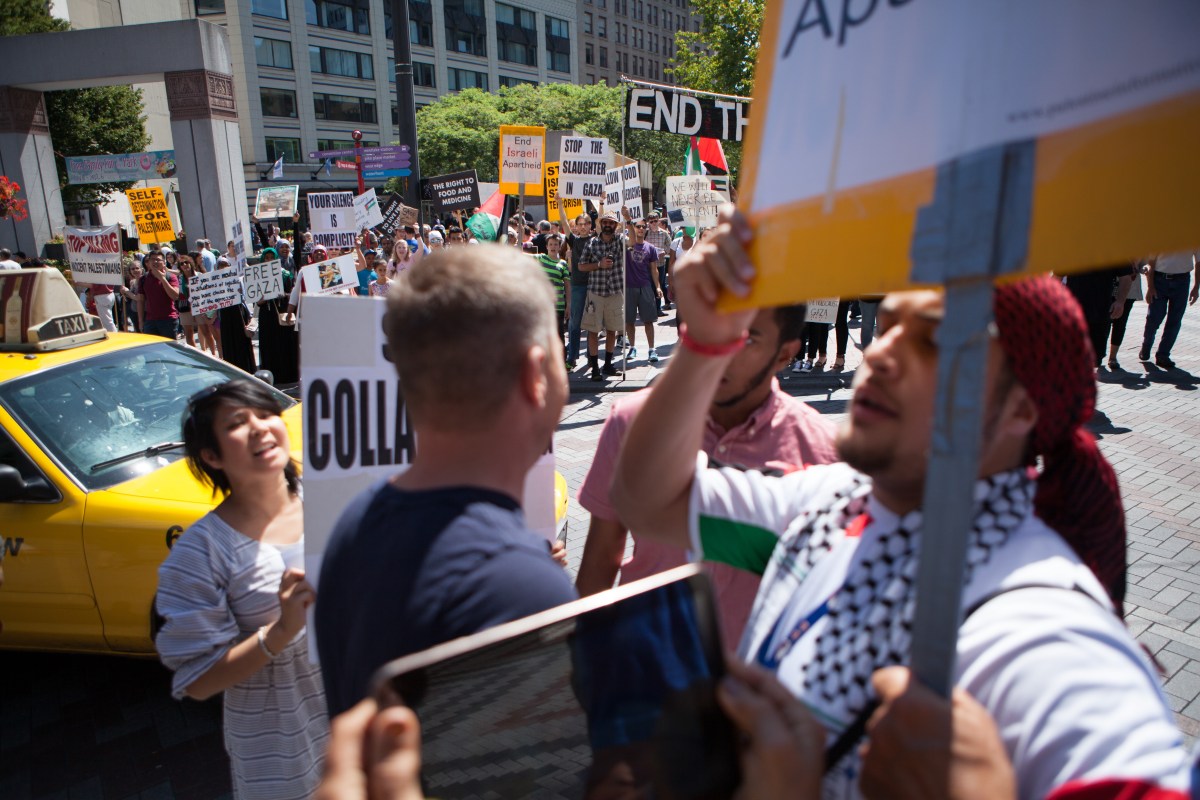 IMG_2875 Published August 14, 2014 at 5616 × 3744 in Activists Protest Bombing of Gaza and innocent passerby harassed by pro Israel opposition and arrested ← Previous Next →