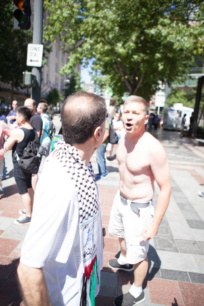 IMG_2913 Published August 14, 2014 at 3744 × 5616 in Activists Protest Bombing of Gaza and innocent passerby harassed by pro Israel opposition and arrested ← Previous Next →