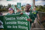 In an event reminiscent of the march from SeaTac to Seattle, workers, union members, and community activists rallied at the McDonalds on Madison. Malcom Cooper Suggs, a McDonalds worker spoke on $15 an hour, “$15 an hour has the ability to alleviate that struggle from us, and not just that, but bring back some of the dignity and respect we deserve as people, because we are people. Too often we are just seen as workers, we have on these uniforms, we look exactly the same. They think that we are one with the company. That’s all they see, people who flip burgers and take orders. At the end of the day, when we clock out, we are all people. I think that’s true for anybody who does their job. This cameraman isn’t a cameraman no more after he clocks out, hes a regular person. We deserve our dignity and I think that comes with a living wage.”