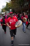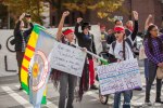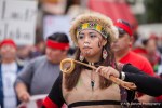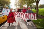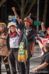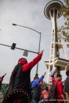 Activists for Indigenous rights, tribal members, native leaders, and indigenous people from around North America gathered to rally and celebrate Seattle’s newest holiday, Indigenous People’s Day, replacing Columbus Day. The event included a rally at Westlake Park, a march to Seattle Center and a rally at the John T. Williams memorial totem pole. More than 150 demonstrators marched through Seattle, stopping in intersections to sing and dance.