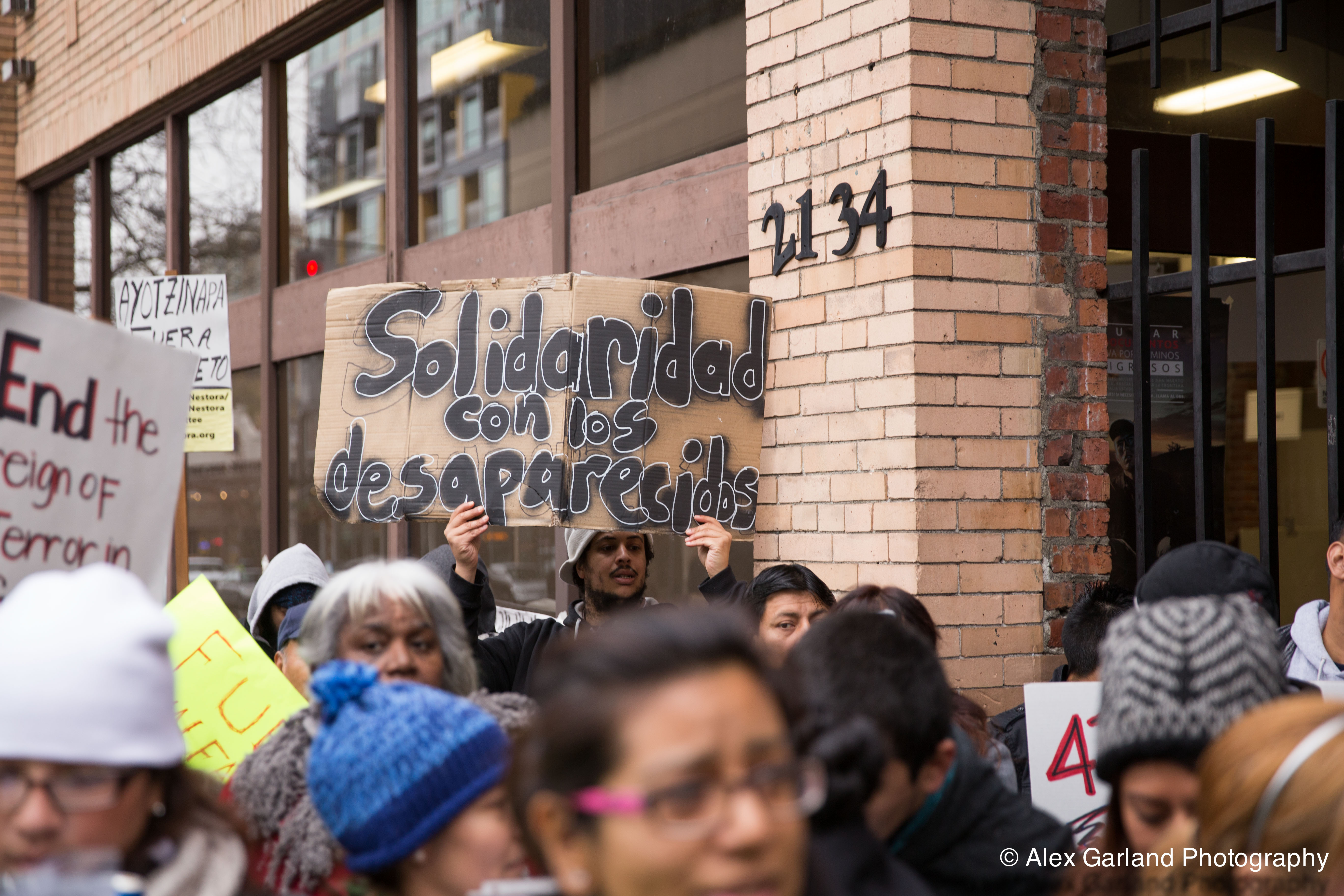 IMG_0128 Published November 21, 2014 at 5472 × 3648 in Hundreds protest the disappearance of of 43 students during a demonstration outside the Mexican Consulate in Seattle, WA ← Previous Next →