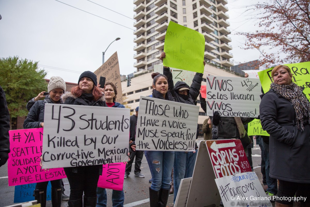 IMG_9623 Published November 21, 2014 at 5472 × 3648 in Hundreds protest the disappearance of of 43 students during a demonstration outside the Mexican Consulate in Seattle, WA ← Previous Next →