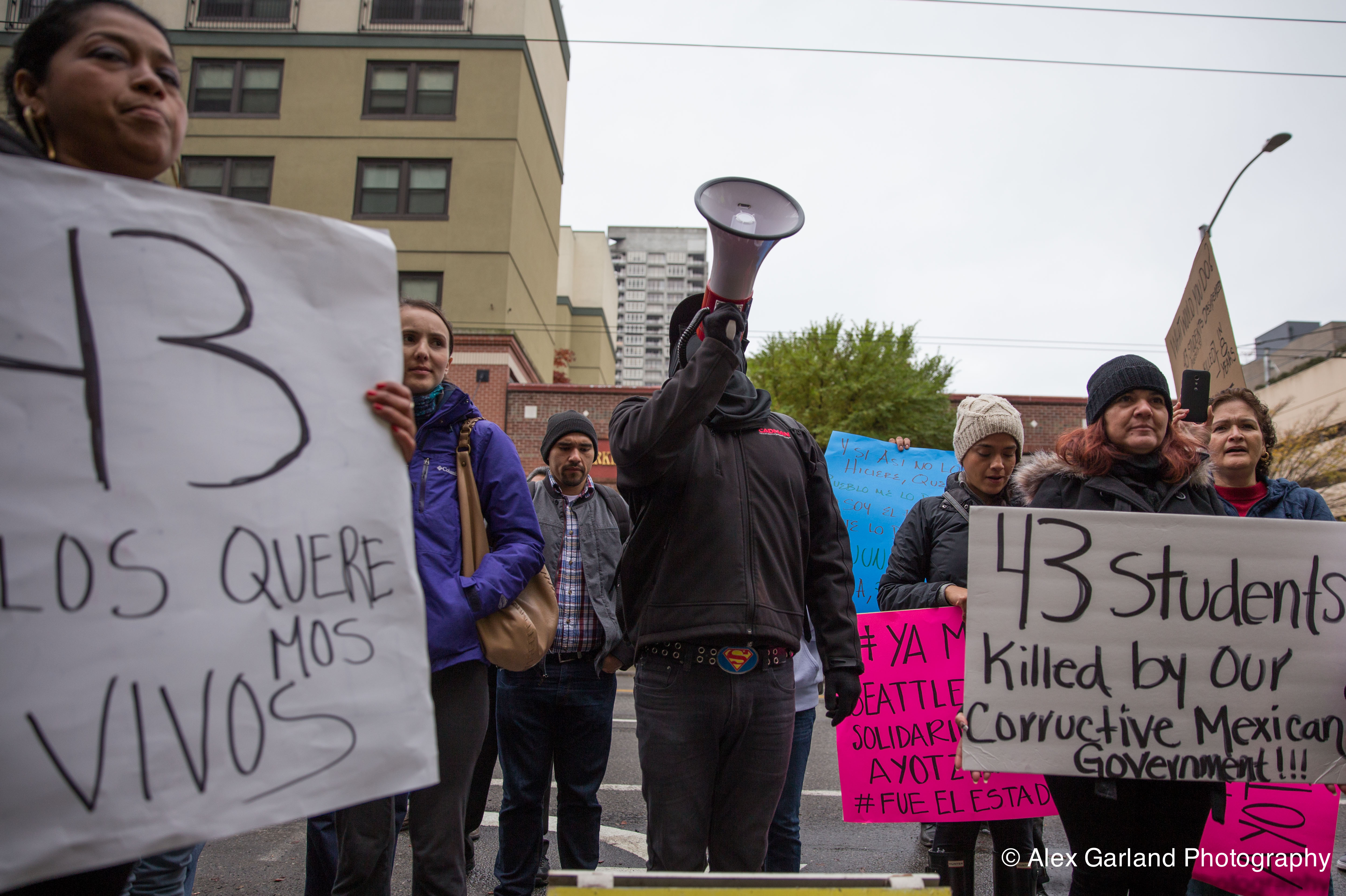 IMG_9628 Published November 21, 2014 at 4997 × 3327 in Hundreds protest the disappearance of of 43 students during a demonstration outside the Mexican Consulate in Seattle, WA ← Previous Next →