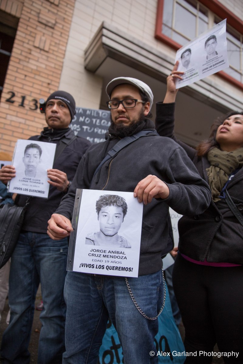 IMG_9878 Published November 21, 2014 at 3648 × 5472 in Hundreds protest the disappearance of of 43 students during a demonstration outside the Mexican Consulate in Seattle, WA ← Previous Next →
