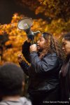 Demonstrators marched through downtown Seattle, up Pike to Capitol Hill where they were met by another group, (previously convened at Seattle Central College) at the intersection of Broadway and Pike. From there, the group of almost 300 demonstrators, made of a diverse background of activists and community members from a wide variety of ages, marched down Madison to 23rd, where they met a small group at 23rd and Union. The large crowd of demonstrators then found their way to the Garfield Community Center where they refused to enter the meeting room until all SPD had left. The group soon tired of their failed attempts to be heard by organizers and returned to the streets.