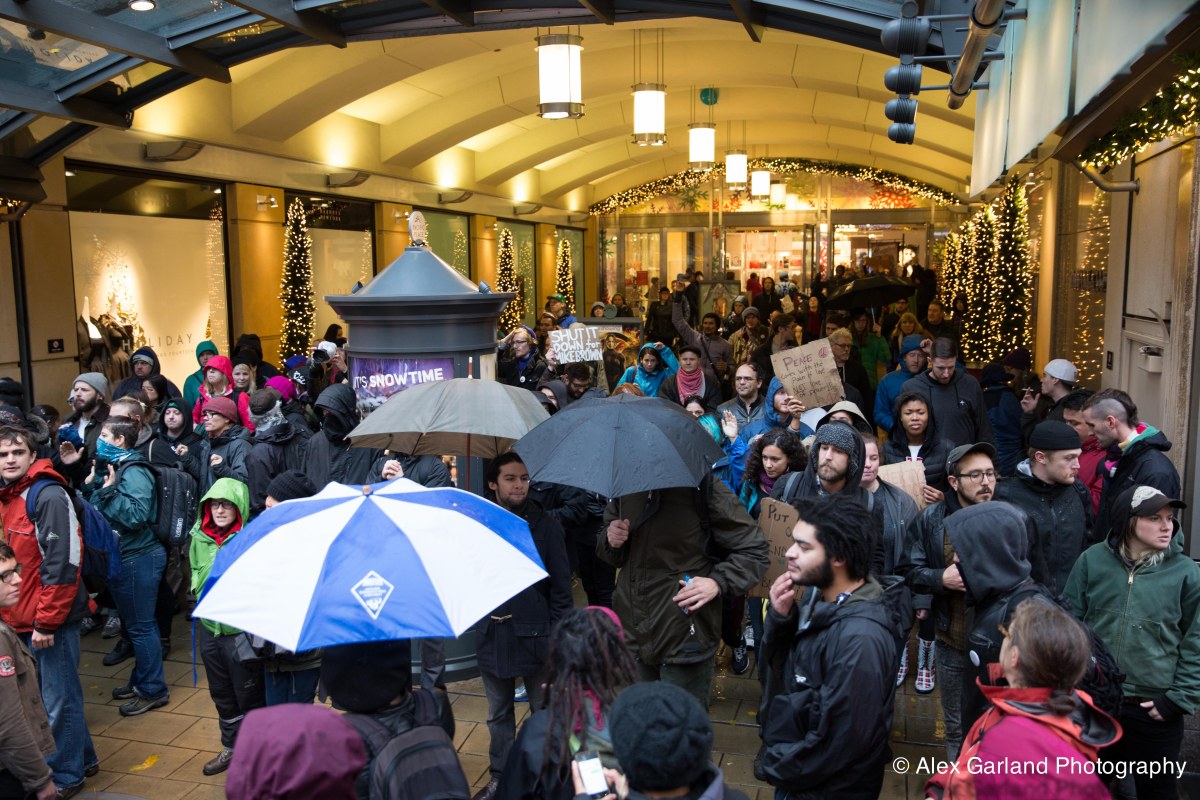 IMG_6157 Published November 29, 2014 at 5472 × 3648 in Seattle protestors disrupt Black Friday shopping for Ferguson solidarity demonstration ← Previous Next →