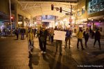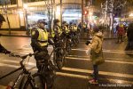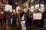 As demonstrators in Seattle marched through the streets, riot police stood guard in front of local malls and department stores. The peaceful protest grew to hundreds as groups joined during the march from Capitol Hill to Westlake Park, while a phalanx of bicycle police followed closely. Traffic was diverted and shoppers scurried by as demonstrators filled intersections with chants of “hands up, don’t shoot” and “We’re here for Mike Brown”. More demonstrations are planned for the coming weekend.