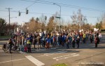 Demonstrators at the University of Washington gathered in Red Square at 11am to stand in solidarity with protests happening around the country in response to lack of police indictment for the deaths of Mike Brown and Eric Garner. Approximately 200 activists marched through the UW campus before blocking streets around the university. At 1pm, a separate group of protestors met at Garfield H.S. for a rally and march led by Garfield students and organized by the NAACP and United Black Clergy. The approximately 200 demonstrators then marched through the Central District as they made their way to the Martin Luther King Jr. Memorial Park for more speakers.