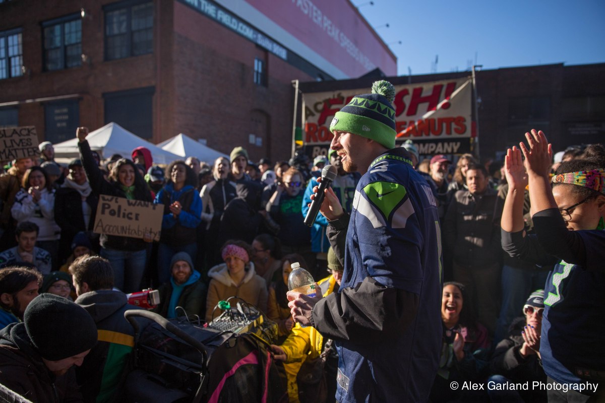 IMG_6784 Published December 14, 2014 at 5472 × 3648 in Seattle demonstrators take protest to Seahawks home game ← Previous Next → Random Seahawks Fan showing love and support