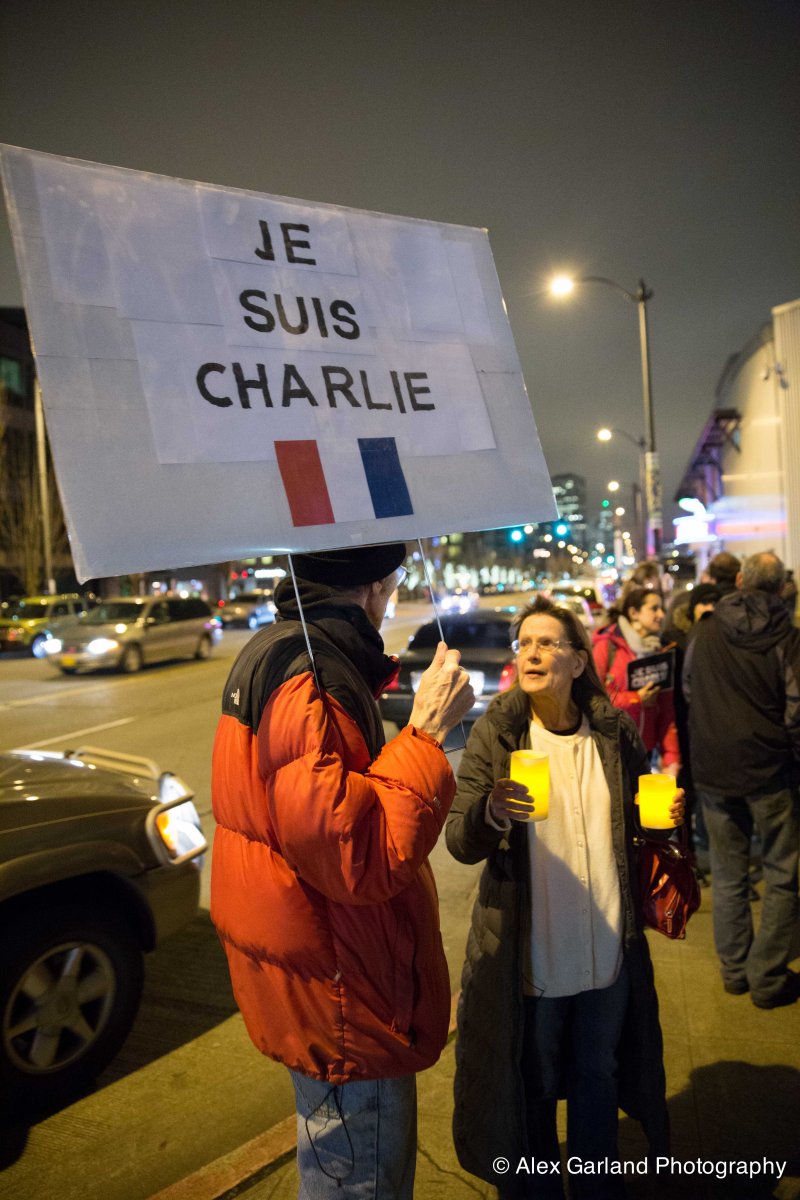 IMG_0436 Published January 7, 2015 at 3648 × 5472 in In Seattle, supporters gather near the French Consulate for a candle light vigil in honor of those killed at Charlie Hebdo in Paris ← Previous Next →