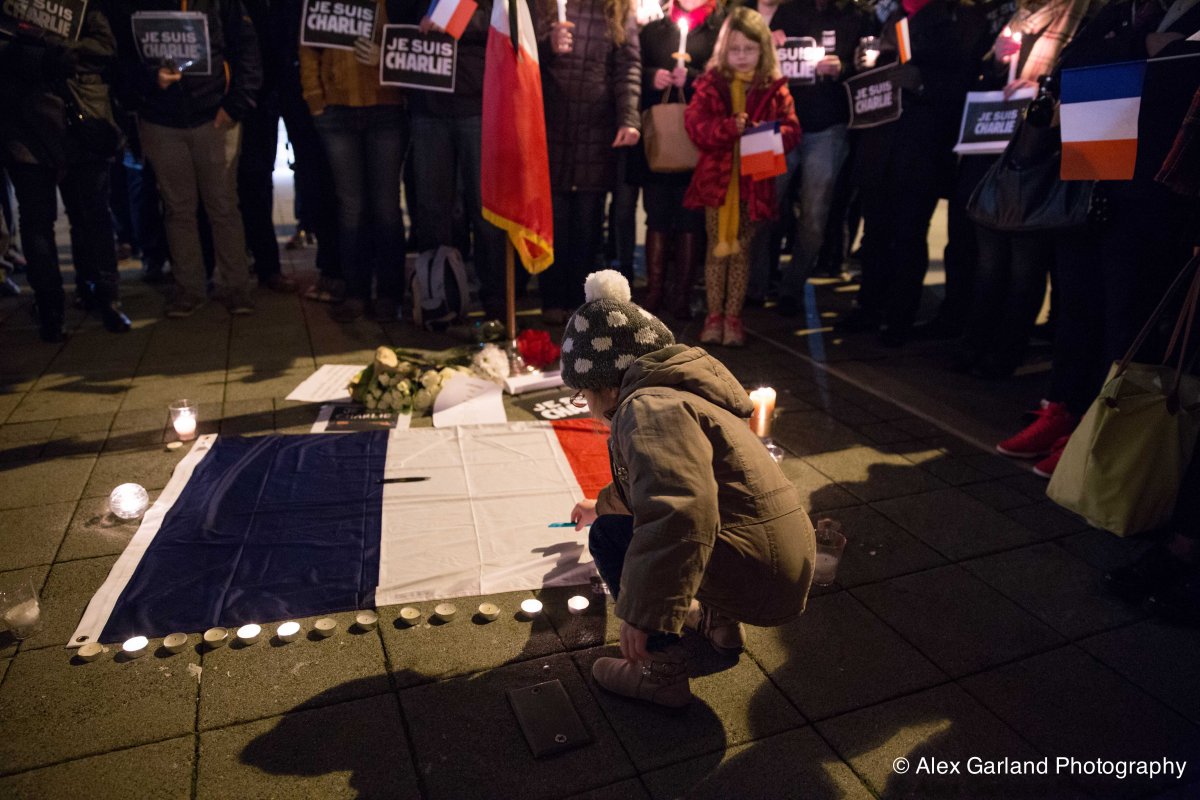 IMG_0736 Published January 7, 2015 at 5472 × 3648 in In Seattle, supporters gather near the French Consulate for a candle light vigil in honor of those killed at Charlie Hebdo in Paris ← Previous Next →