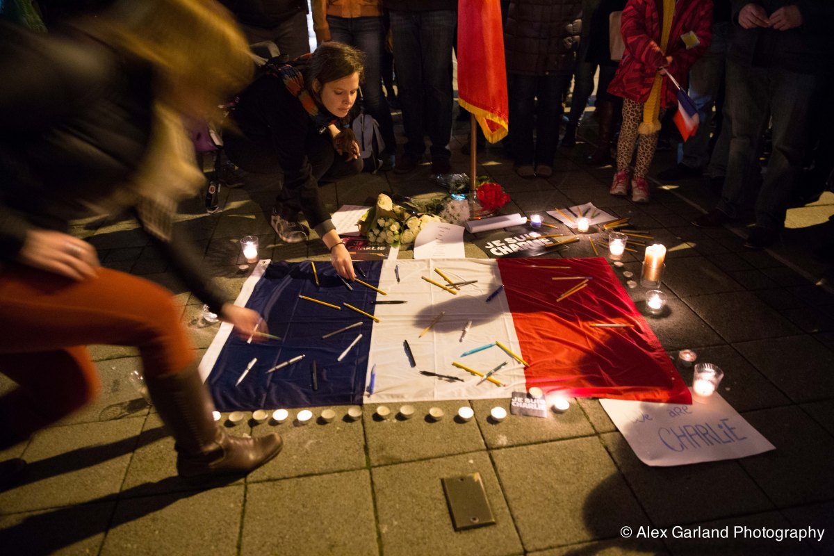 IMG_0786 Published January 7, 2015 at 5472 × 3648 in In Seattle, supporters gather near the French Consulate for a candle light vigil in honor of those killed at Charlie Hebdo in Paris ← Previous Next →