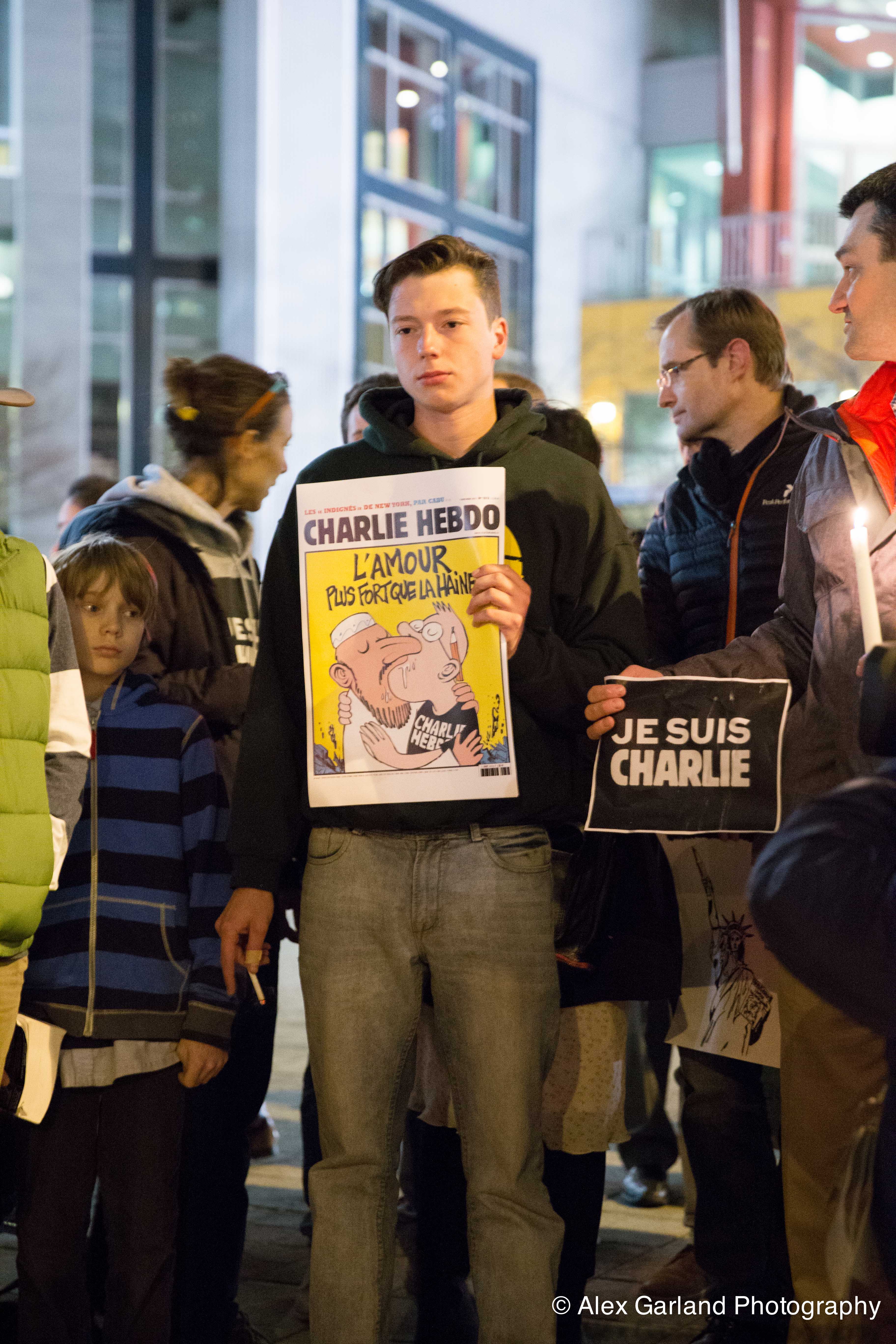 IMG_0825 Published January 7, 2015 at 3648 × 5472 in In Seattle, supporters gather near the French Consulate for a candle light vigil in honor of those killed at Charlie Hebdo in Paris ← Previous Next →