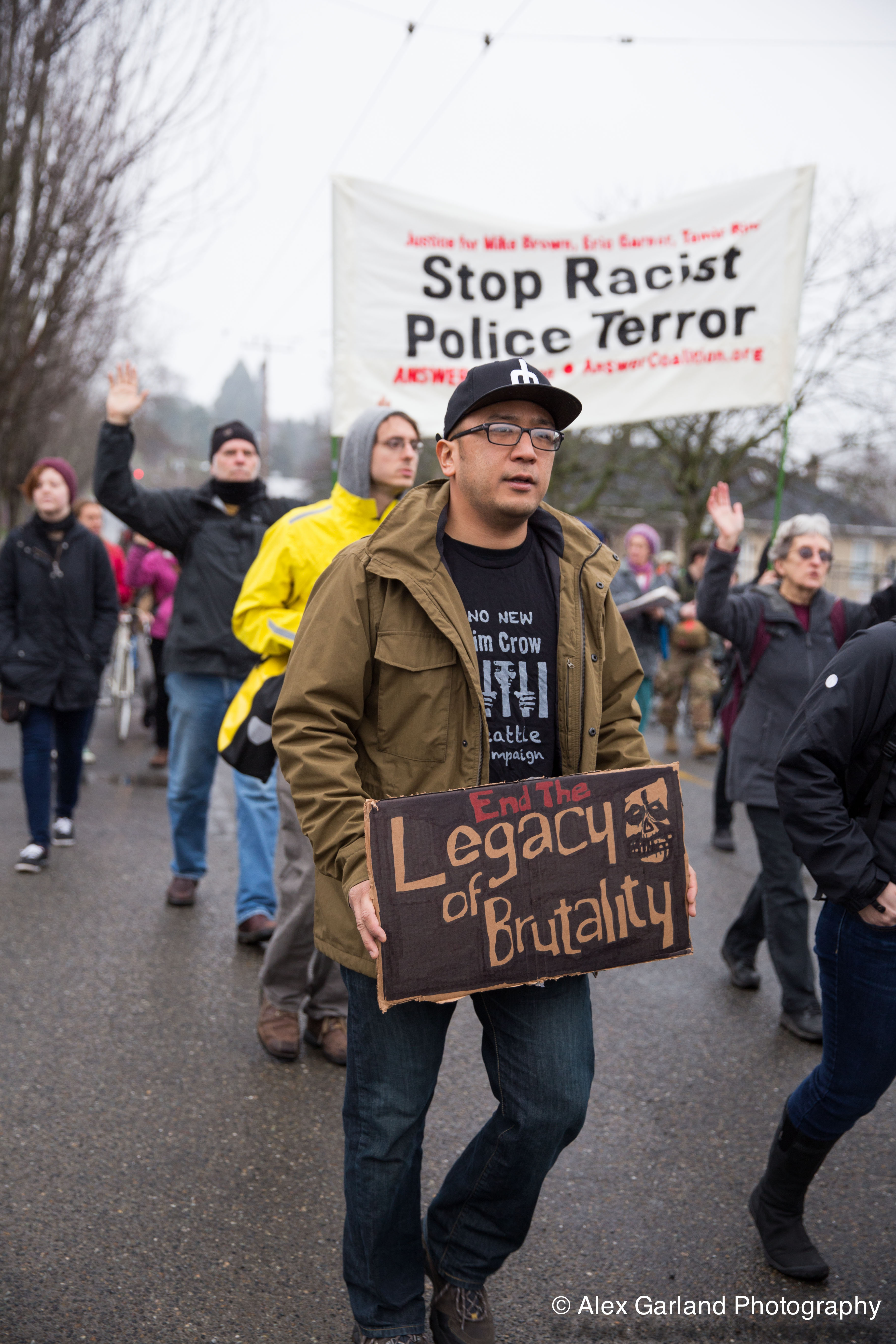 IMG_1057 Published January 10, 2015 at 3648 × 5472 in Black Lives Matter activsts march through Seattle’s Central District in protest for police accountability ← Previous Next →