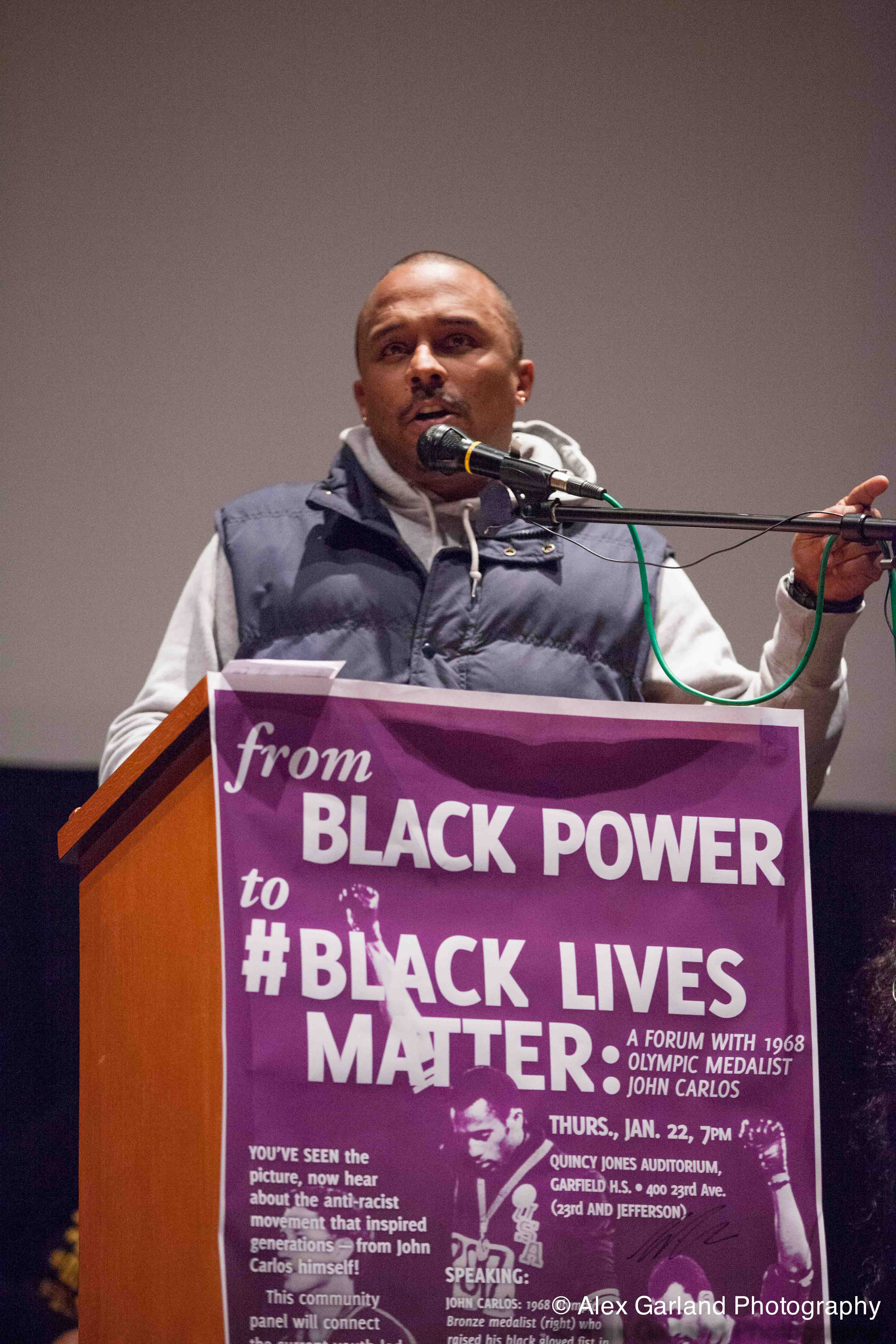 IMG_3894 Published January 23, 2015 at 3744 × 5616 in Olympic Medalist, John Carlos connects the Black Power movement to the Black Lives Matter movement at Garfield High School ← Previous Next →