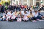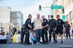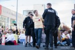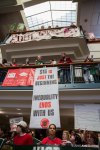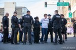Several hundred workers, students, teachers, activists, and union members gathered at Occidental Park in Seattle for a rally to mark the start of a protest for living wages in Washington. The demonstration, part of a national day of action, brought together workers from all walks of life, from WalMart to Seattle University, with a focus on labor rights and enforcing the $15 minimum wage in Seattle. The first stop on the route was in front of the Uber offices in Seattle, where activists demanded drivers receive fair compensation. As the march continued towards Westlake Park, workers could be seen raising fists of solidarity, waving, or honking horns as demonstrators walked by. Working Washington and other labor groups met the crowd at Westlake for a speaking event featuring workers from Macy’s, who receive less hours than required to pay their bills. Demonstrators then marched around Macy’s before heading to Cal Anderson to meet with workers from SEIU union members and continued down 12th Ave toward Seattle University. The protest entered the Pigott Auditorium, occupying the space with speakers, and banner drops. As the students filed out of the building, they were directed to 12th and Madison, where 21 activists were peacefully arrested for civil disobedience in protest of poor treatment of adjunct faculty at Seattle University.