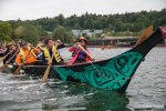 Kayaktivists then followed the native canoes as permission was asked and granted to beach their canoes and walk on Duwamish land. A program with music and speakers followed soon at Jack Block Park. More events are planned in the next few days.
