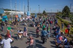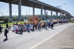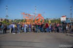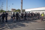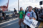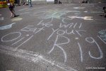 More demonstrations were held at the Port of Seattle today as hundreds of activists from across the Pacific Northwest came together in the early morning hours to protest Shell’s future plans for drilling in the Arctic. Shell’s Arctic drilling rig, the Polar Pioneer, sits in the Duwamish River, at the mouth of Elliott Bay, awaiting it’s trip to the Arctic Sea. Protestors gathered around 6:30 am at the Duwamish fishing pier and began marching towards Terminal 5 over the Spokane St. Bridge, flanked on both sides by rows of Seattle Police on bicycles. Activists blockaded two entrances while listening to speakers, musicians, and danced to a DJ in the middle of the street. Coffee was provided by Black Coffee Co-op and pizza was ordered by supporters in New York and Florida while Food Not Bombs provided vegetarian options. Children and activists chalked the streets while groups mingled and discussed a vast array of climate related issues. At approximately 2:30 pm, the demonstrators marched back to their starting location for a final rally. No arrests or injuries were reported.