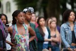 The University of Washington’s Greek Row was the site of a rally and block party in protest of alleged sexual assaults, racism, and verbal harassment by members of fraternities. Hundreds of students, activists, and members of fraternities and sororities attended the street party on 17th between 45th and 47th. Seattle police blocked the streets for the day and put up metal barricades along the sides of the street. A table with zines was available to answer questions about misogyny and white privilege while people spoke about their experiences with fraternities, from drugged drinks to attempted sexual assault and rape. Talented performers and MC’s spoke truth through the mic while calling out the fraternities and sororities for not stopping issues perpetuated by the Greek system. Members of fraternities and sororities with houses near the event could be seen sitting on the steps of their houses or lined up on the sidewalk, outside of the barricade, listening to the speakers and music. When approached, however, members of the Greek society at UW were reluctant to speak on the record. Those that did, said that they supported the event and that it was “timely”. The event ended with no arrests and the only yelling came from passengers in cars as they drove by. None of the vitriolic comments seen on the Facebook event page were heard at this event.