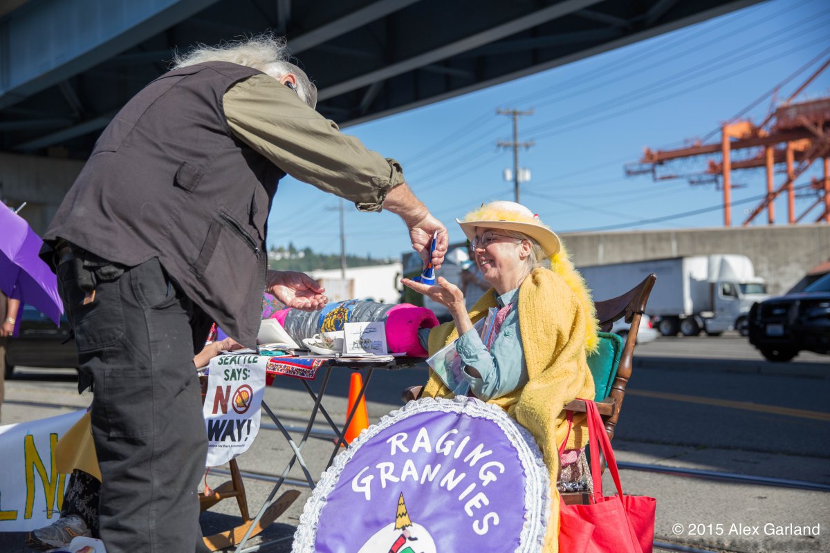 IMG_1622 Published June 9, 2015 at 5472 × 3648 in Seattle’s Raging Grannies Arrested After Blocking Shell Workers From Access to Arctic Drilling Rig ← Previous Next →