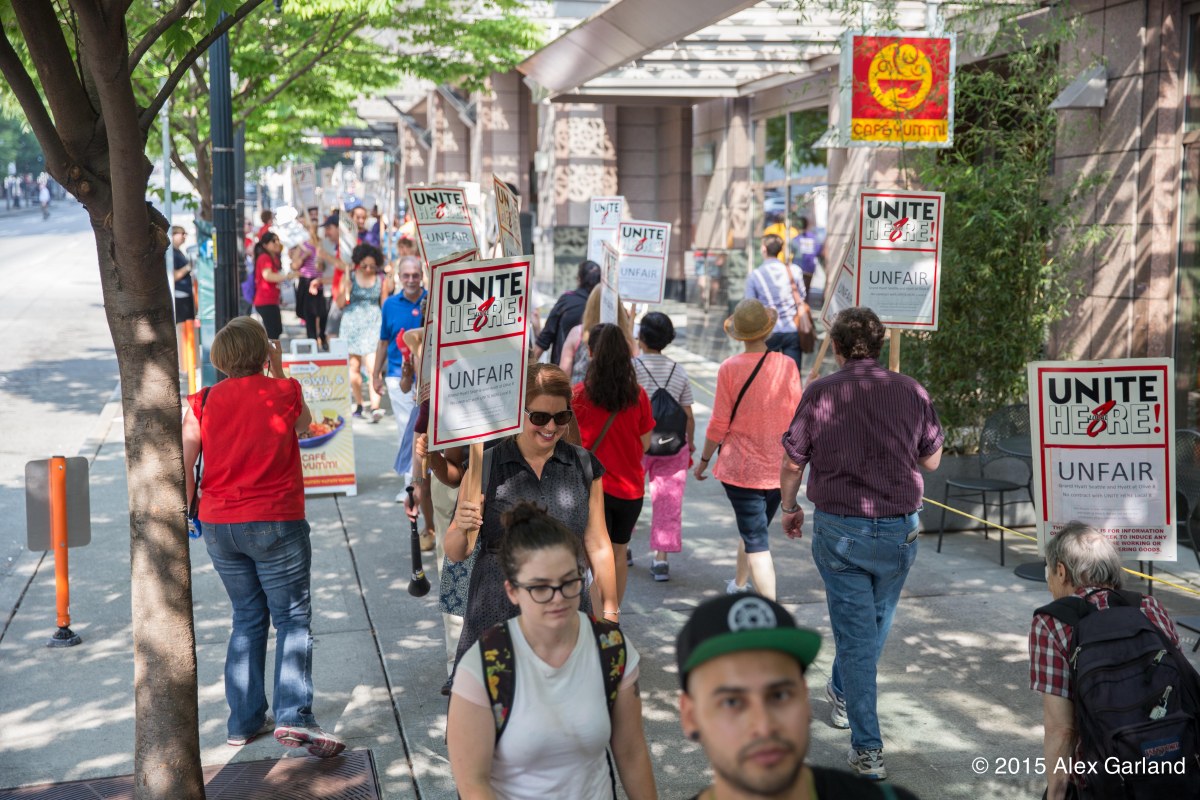 IMG_1800 Published July 8, 2015 at 5472 × 3648 in Workers, Activists, and Union Supporters Picket And Rally At Grand Hyatt And Olive 8 Hyatt In Seattle Next →