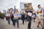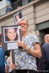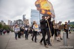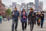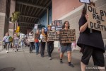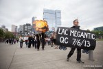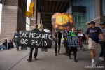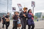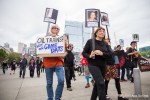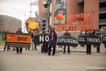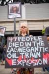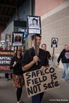 As the gates to Safeco Field opened for the Mariners vs. Angels game, thousands of fans streamed past a rally held near Century Link Field in protest of oil trains that pass the stadiums on a daily basis. Seattle City Council Member Kshama Sawant spoke at the rally and joined the demonstration as they marched from Century Link to Safeco in a silent procession holding photos and names of the 47 people who died in Lac-Mégantic Quebec during an oil train explosion in 2013.