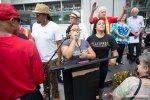 An estimated 3,000 people gathered in Westlake Park on Saturday, August 8th, to celebrate the 80th anniversary of Social Security and the 50th anniversary of Medicare. Speakers included the president of the Seattle chapter of the NAACP Gerald Hankerson, Seattle City Council member Kshama Sawant, Congressional Representative Adam Smith, WA State Senator Pramila Jayapal, and Vermont Senator and presidential candidate Bernie Sanders.