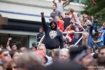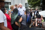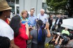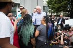 As Bernie Sanders took the stage, two activists proceeded to also take the stage. After confronting Bernie Sanders and the organizers, the activists were given the microphone and allowed to speak. The two women, affiliated with the Black Lives Matter movement in Seattle, called for four and a half minutes of silence to reflect on the death of Michael Brown, on the eve of the one year anniversary of his death. Boo’s and jeers rained down on the activists for interrupting Bernie Sanders while some in the crowd could be heard shouting “let her speak!”. As the crowd continued shouting, the activists replied they would shut the event down if they were not heard. The activists welcomed Sanders to Seattle and explained the issues they were fighting for. At the end of the moment of silence, the microphone was handed to Bernie Sanders, but he handed it back to the organizers and refused to speak. Sanders then left the stage and entered the crowd to shake hands. Sanders spoke at an election event that drew 12,000+ at the University of Washington later that evening.