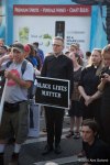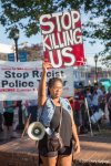 Hundreds gathered at Seattle Central College in Seattle to march in solidarity with Black Lives Matter demonstrations occurring around the country in memory of Michael Brown on the one year anniversary of his death. After listening to several speakers the march proceeded through Capitol Hill, the Central District, and back, blocking intersections as those who felt compelled to speak did so. The first stop along the march route was the Seattle Police Department East Precinct at 12th and Pine where SPD blocked the sidewalk around the building and SPD vehicles parked on the street. Several more intersections were encircled along the route and people of color were encouraged to take the megaphone and express their beliefs and concerns. While SPD maintained a heavy presence on bicycles and following the demonstration in vehicles, no arrests were made.