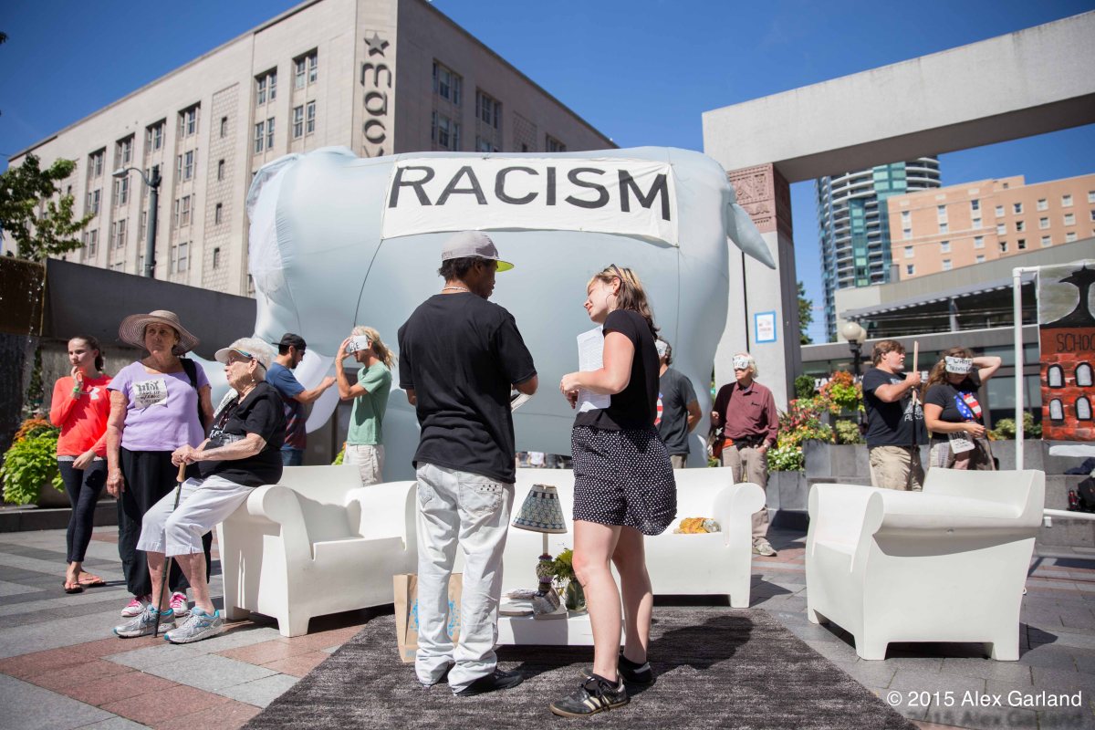 IMG_8474 Published August 17, 2015 at 5472 × 3648 in “Elephant In The Room” art installation brings dialogue of racism to Westlake Center ← Previous Next →