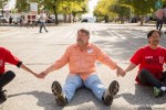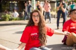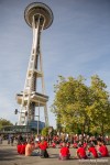 In the continuing struggle of union workers at Seattle’s Space Needle, over 100 supporters and members of Unite Here Local 8 formed a picket line and risked arrest in front of the Space Needle. After 45 minutes of picketing, 23 activists sat in a circle at the middle of Broad Street and John Street in front of the Space Needle while 15-20 SPD officers blocked traffic and watched from the sidewalk. A marching band kept the picket line moving as the circle of civil disobedience chanted demands of job security.