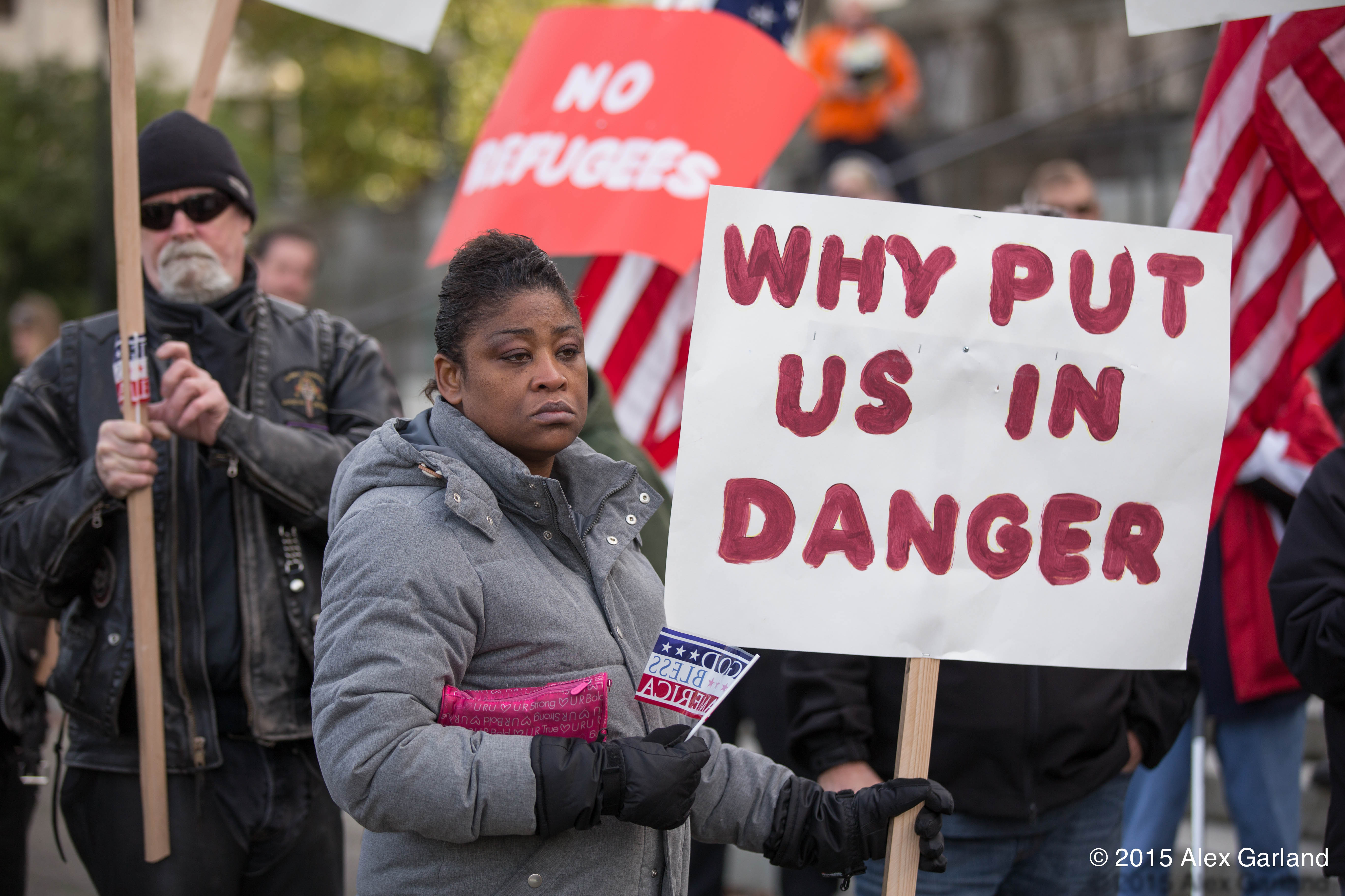 IMG_9050-2 Published November 20, 2015 at 5472 × 3648 in Anti-refugee protest at Washington State Capitol in Olympia met by larger group of pro-refugee demonstrators ← Previous Next →