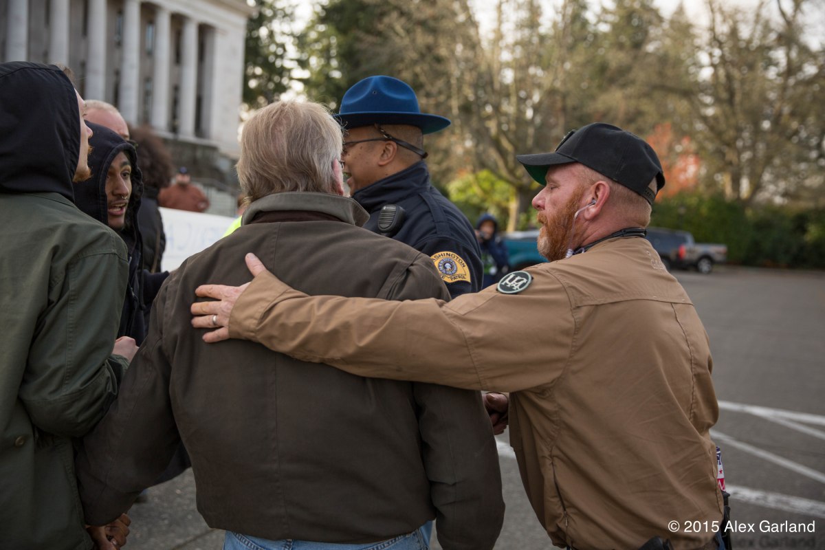 IMG_9098 Published November 20, 2015 at 5760 × 3840 in Anti-refugee protest at Washington State Capitol in Olympia met by larger group of pro-refugee demonstrators ← Previous Next →