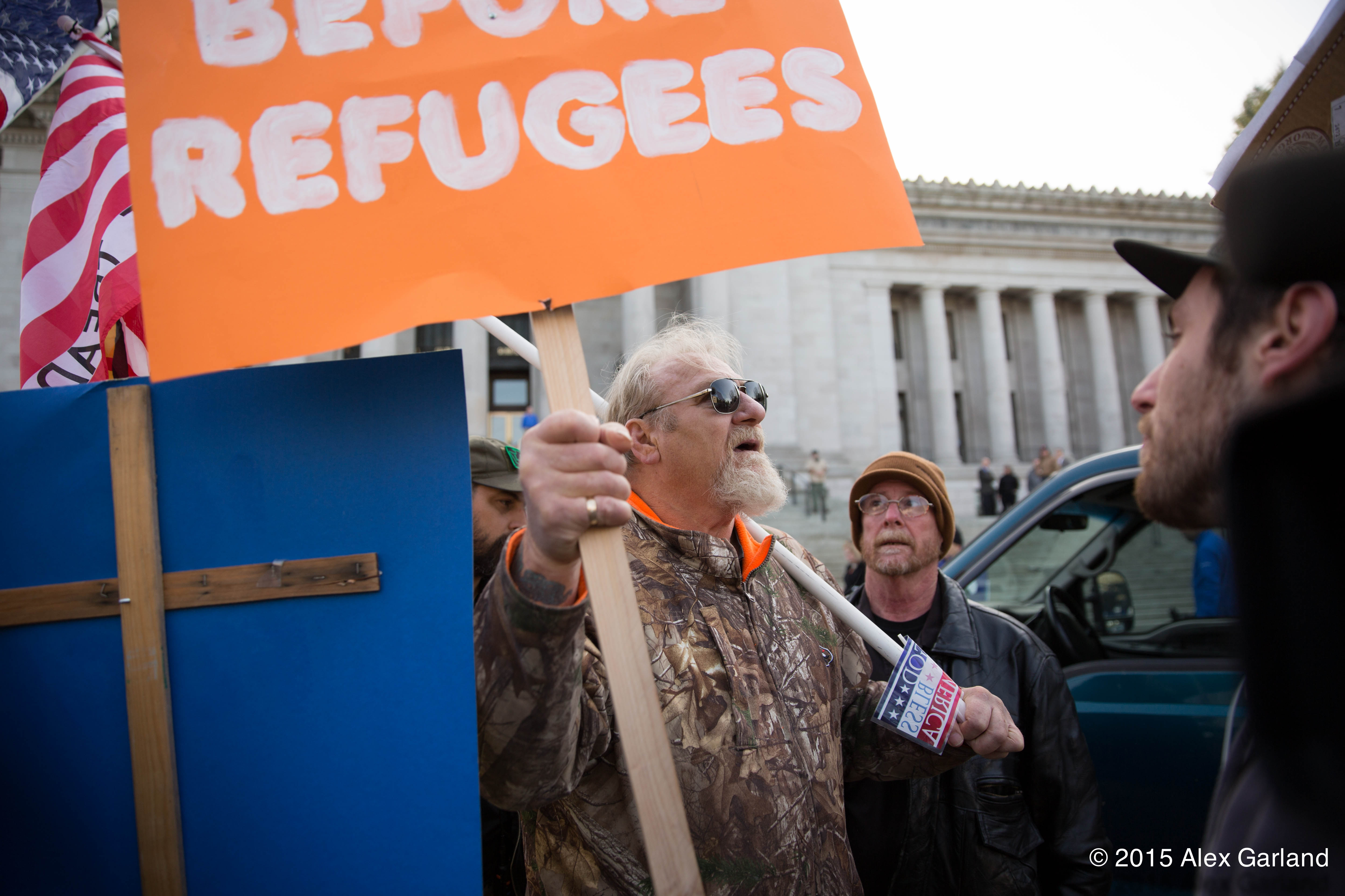 IMG_9218 Published November 23, 2015 at 5760 × 3840 in Anti-refugee protest at Washington State Capitol in Olympia met by larger group of pro-refugee demonstrators ← Previous Next →
