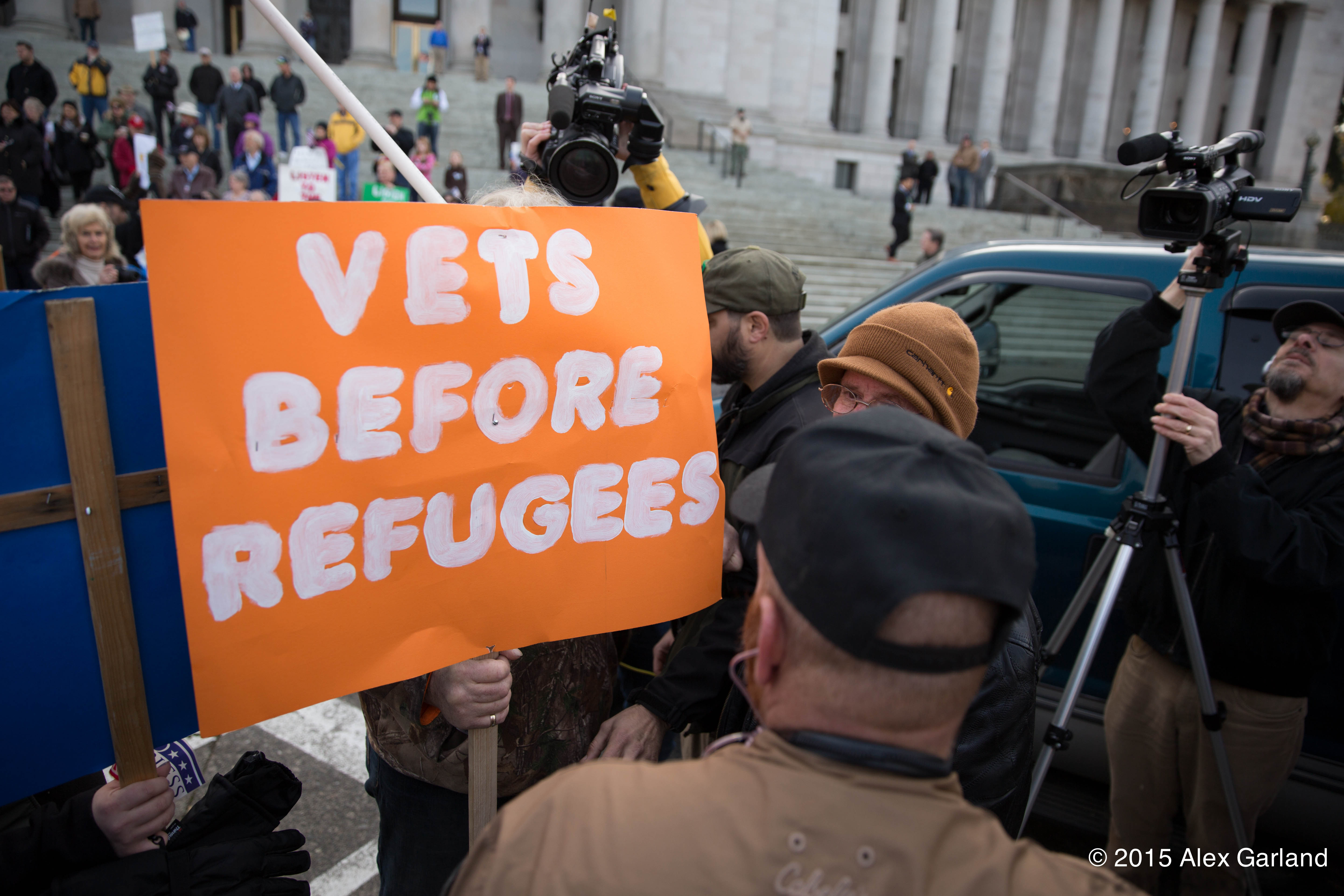 IMG_9223 Published November 23, 2015 at 5760 × 3840 in Anti-refugee protest at Washington State Capitol in Olympia met by larger group of pro-refugee demonstrators ← Previous Next →