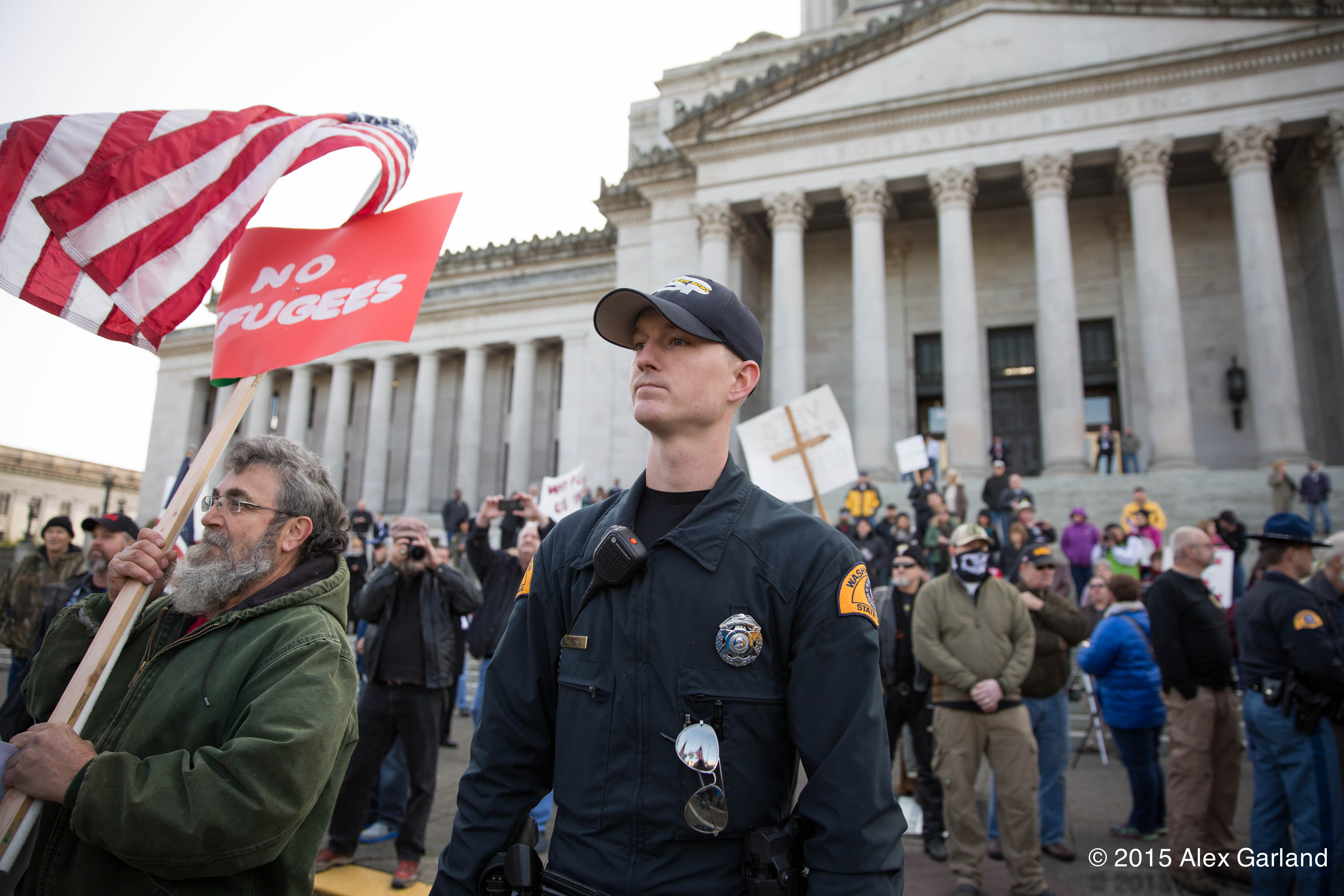 IMG_9331 Published November 20, 2015 at 5760 × 3840 in Anti-refugee protest at Washington State Capitol in Olympia met by larger group of pro-refugee demonstrators ← Previous Next →