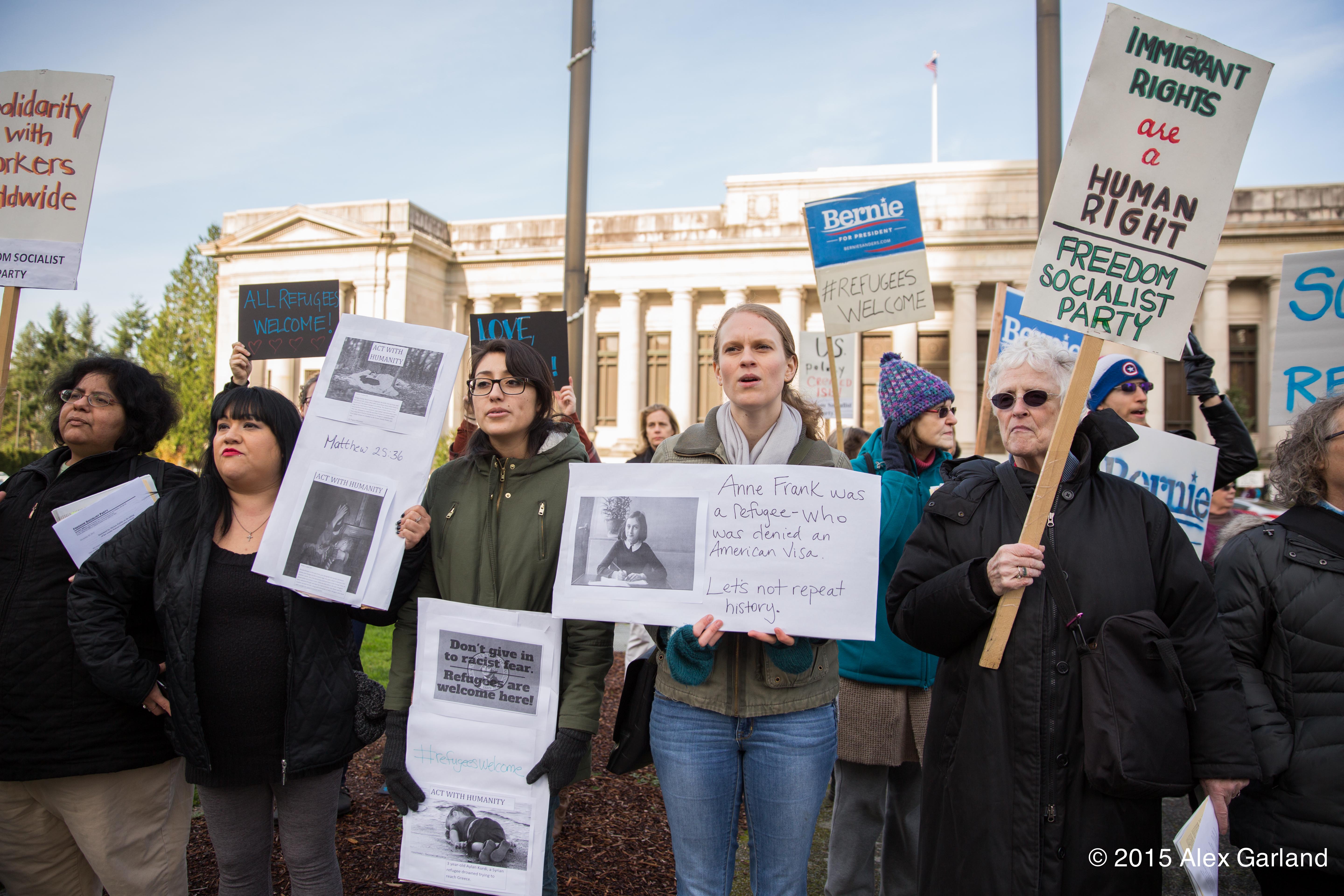 IMG_9355 Published November 20, 2015 at 5760 × 3840 in Anti-refugee protest at Washington State Capitol in Olympia met by larger group of pro-refugee demonstrators ← Previous Next →