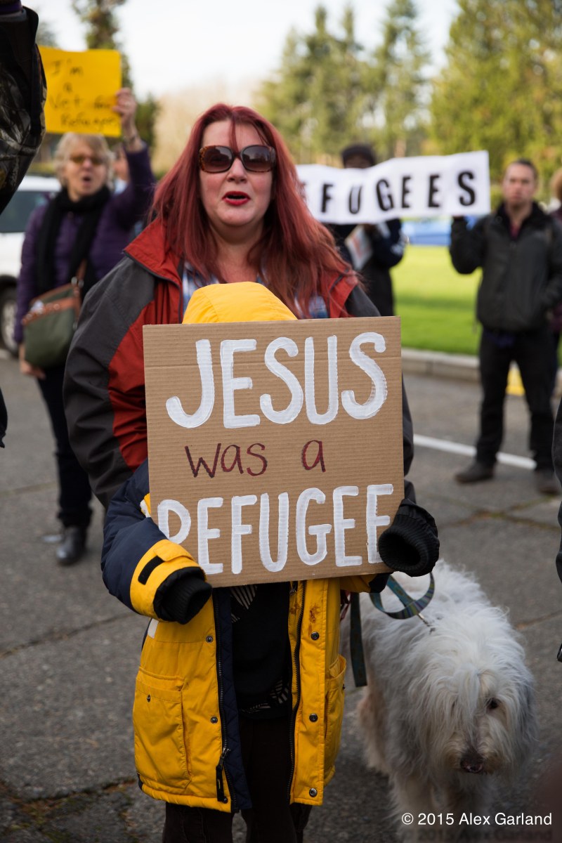 IMG_9459 Published November 20, 2015 at 3840 × 5760 in Anti-refugee protest at Washington State Capitol in Olympia met by larger group of pro-refugee demonstrators ← Previous Next →
