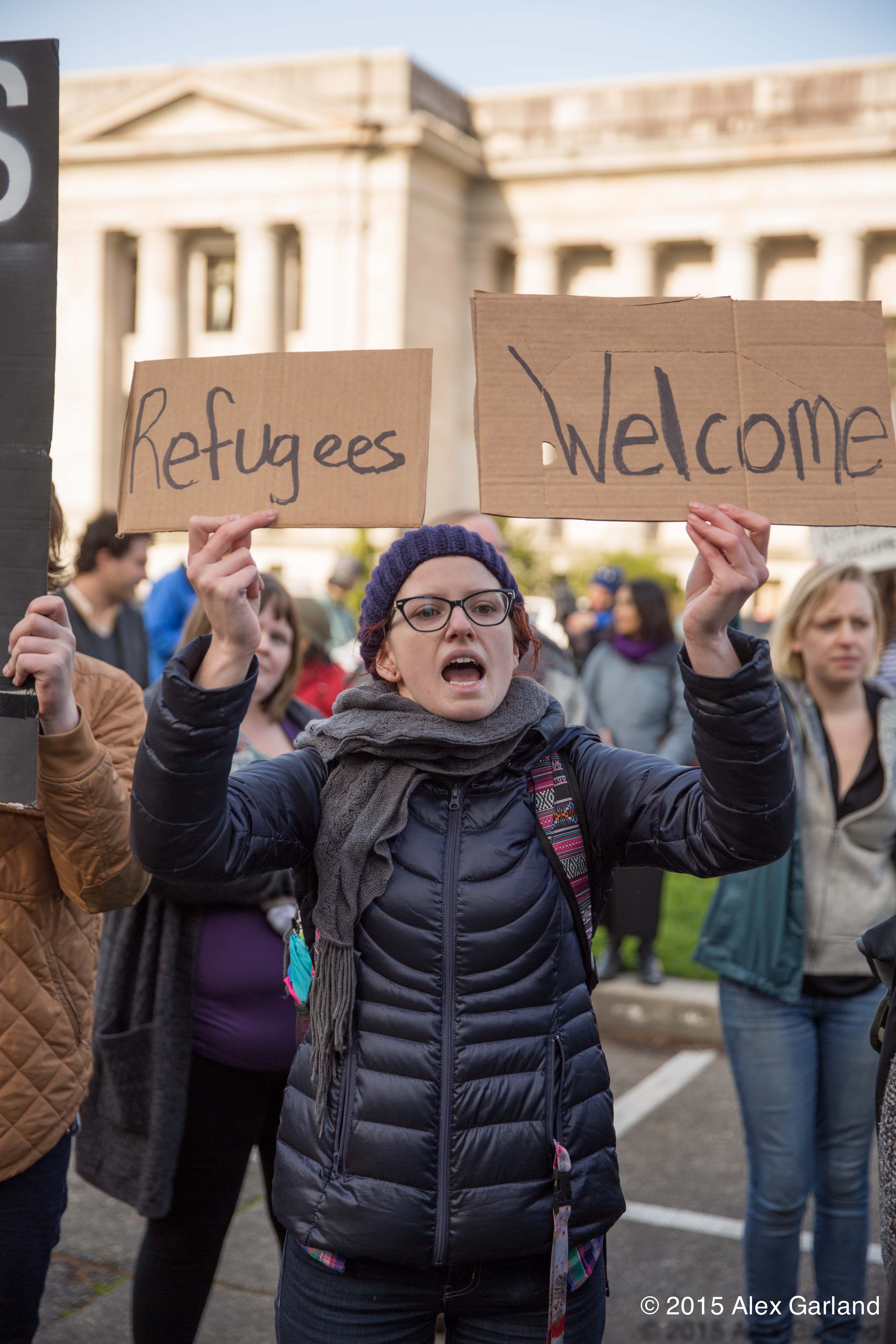 IMG_9550 Published November 20, 2015 at 3840 × 5760 in Anti-refugee protest at Washington State Capitol in Olympia met by larger group of pro-refugee demonstrators ← Previous Next →
