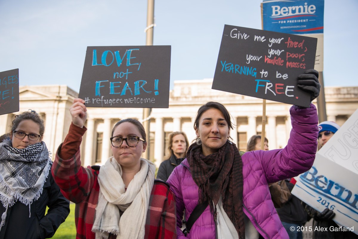 IMG_9560 Published November 20, 2015 at 5760 × 3840 in Anti-refugee protest at Washington State Capitol in Olympia met by larger group of pro-refugee demonstrators ← Previous Next →