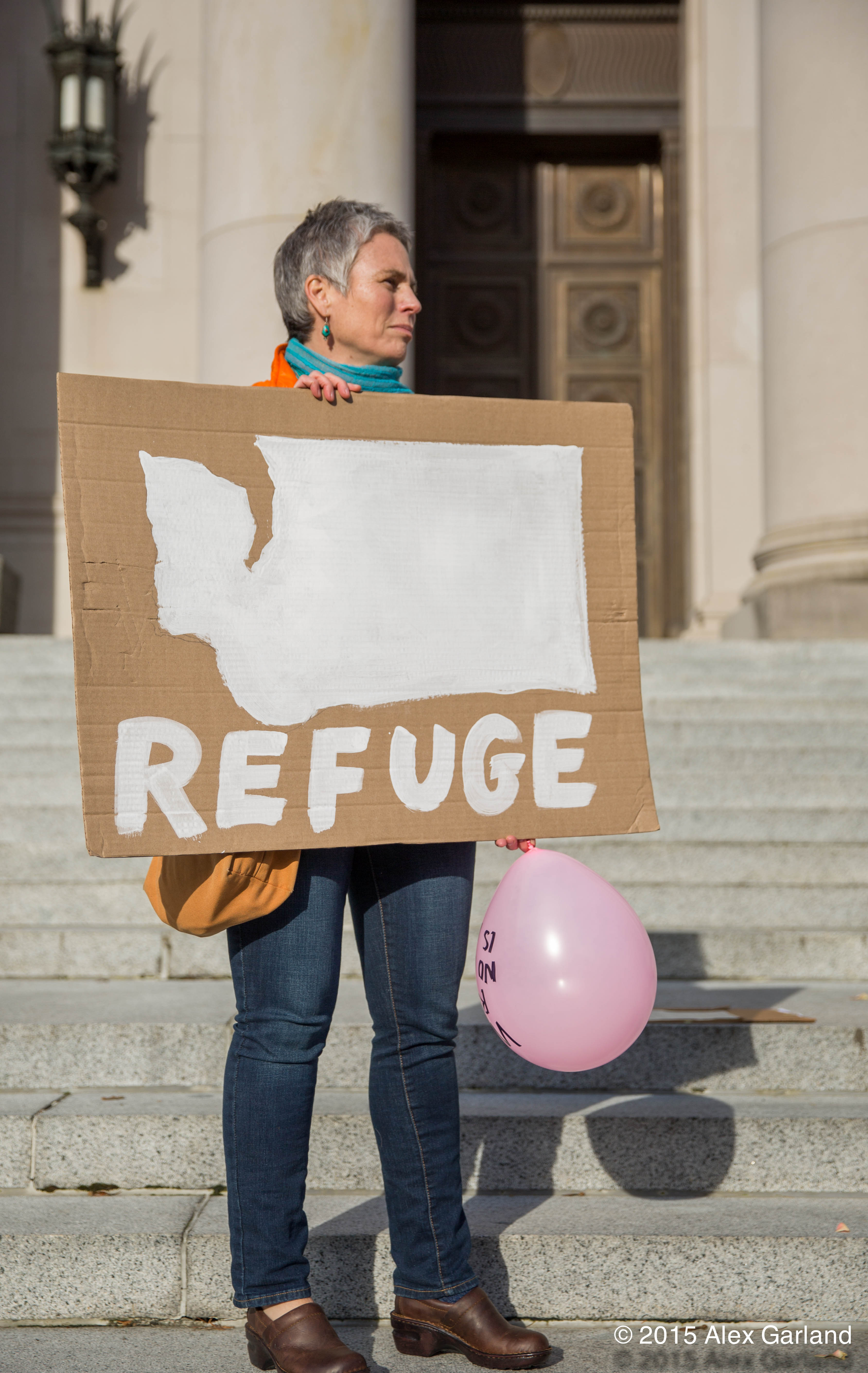 IMG_9703 Published November 20, 2015 at 3373 × 5334 in Anti-refugee protest at Washington State Capitol in Olympia met by larger group of pro-refugee demonstrators ← Previous Next →