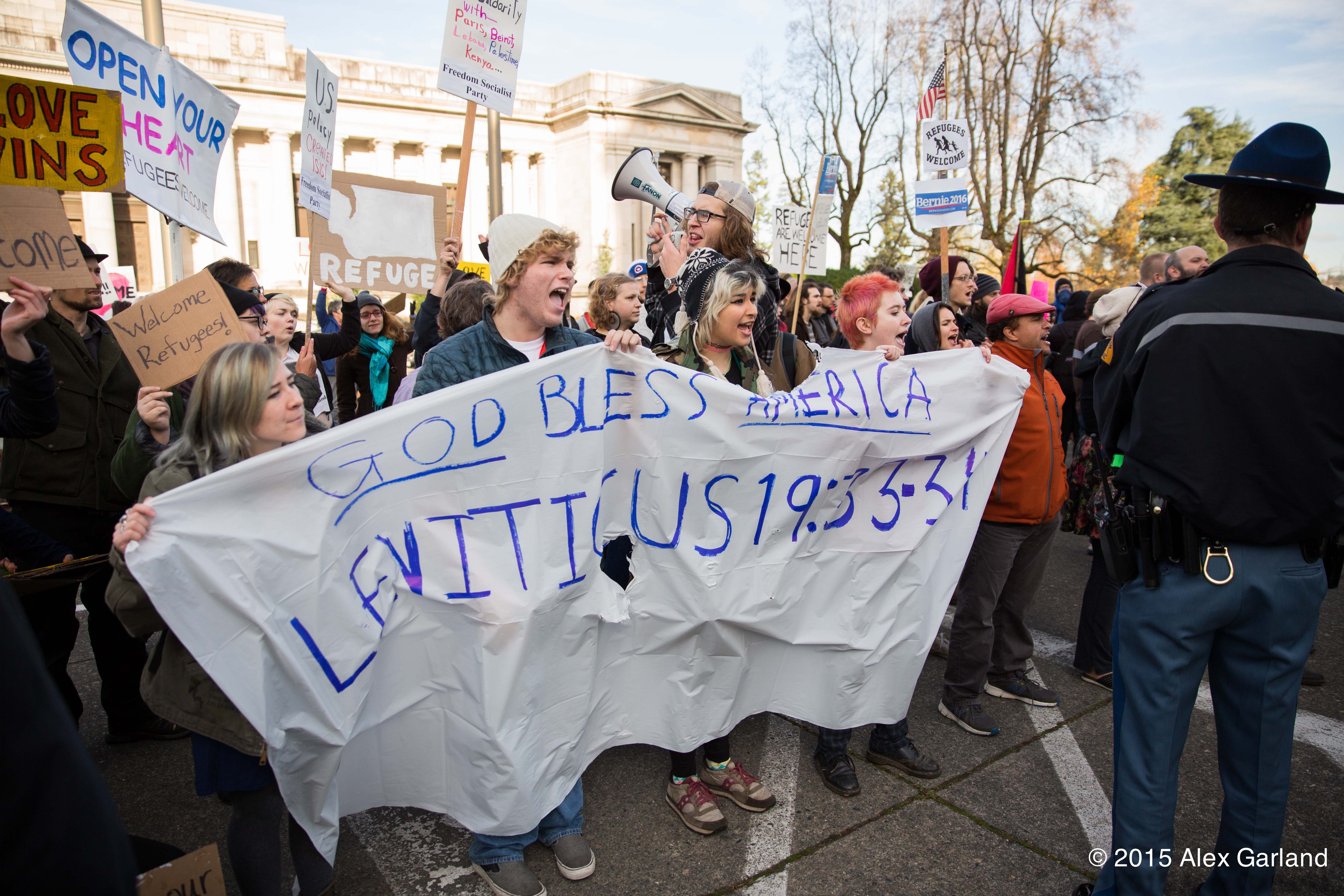 IMG_9789 Published November 20, 2015 at 5760 × 3840 in Anti-refugee protest at Washington State Capitol in Olympia met by larger group of pro-refugee demonstrators ← Previous Next →